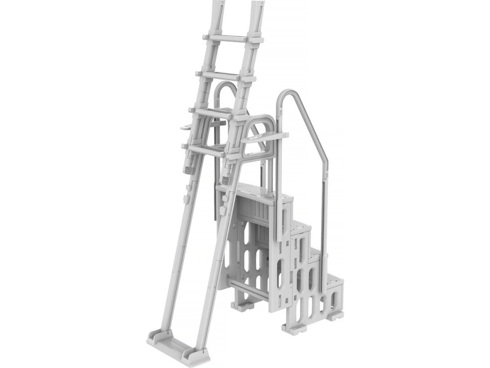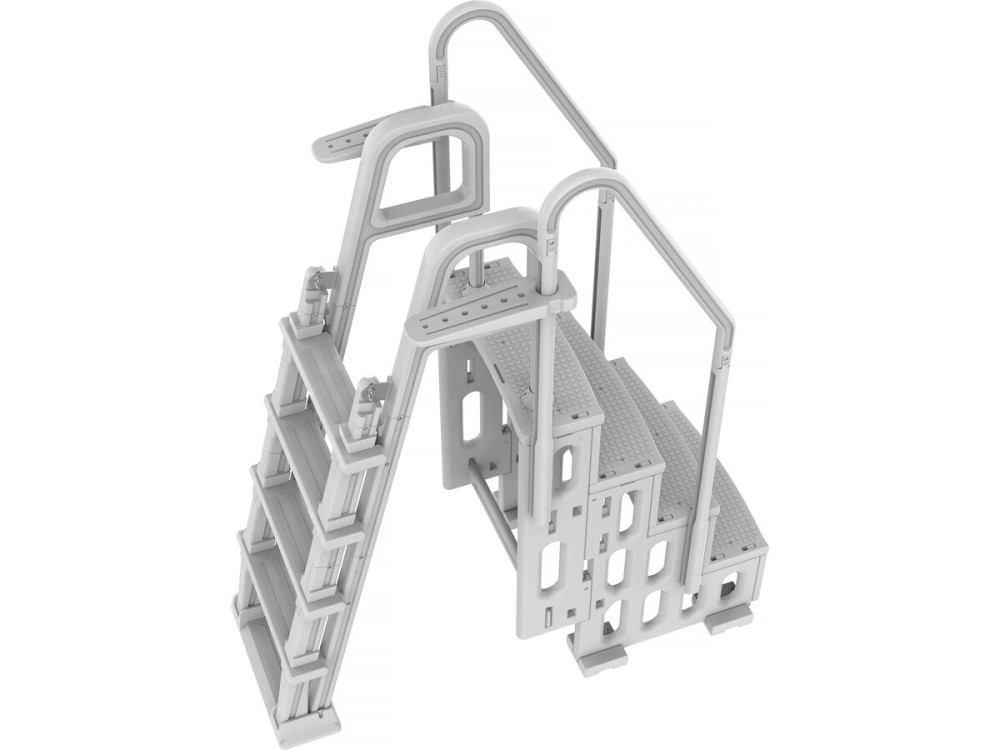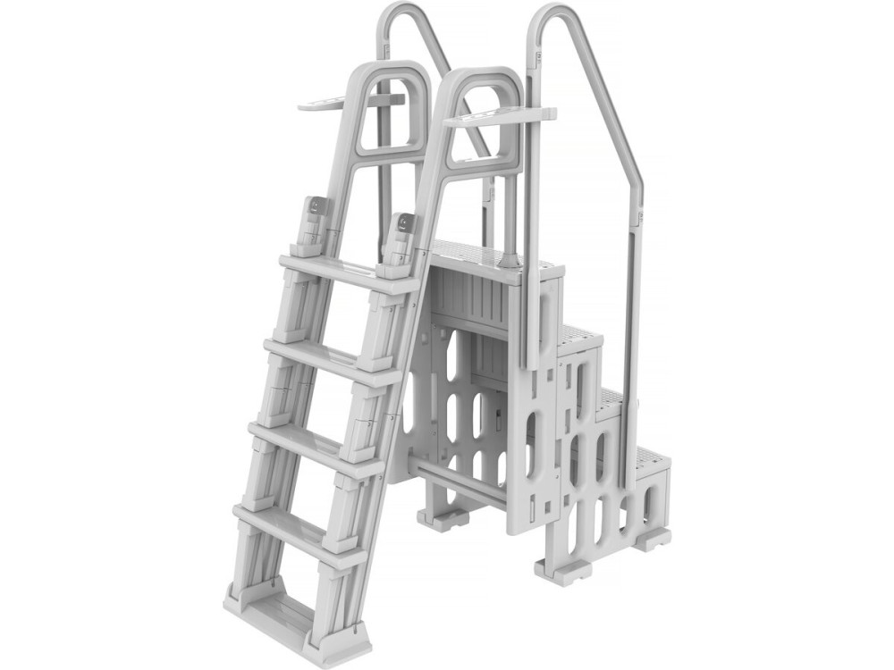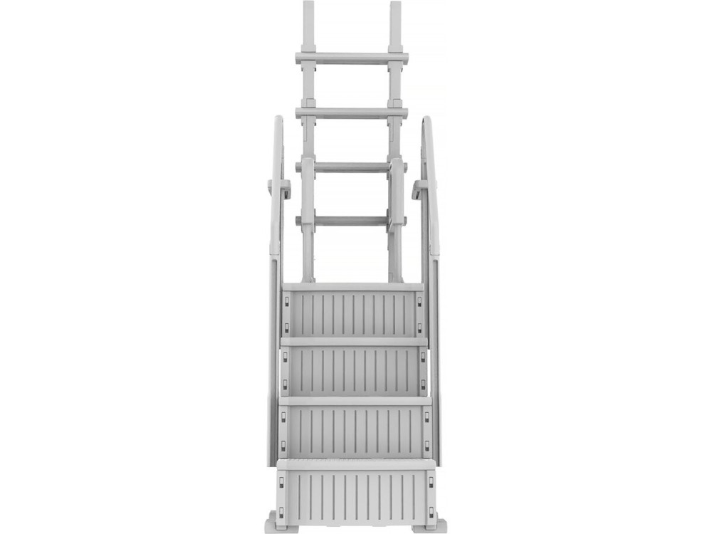 Piattaforma Superiore (Podio): A differenza delle scale economiche a "forbice", la referenza 142741 include una piattaforma centrale rinforzata che offre un appoggio stabile prima di iniziare la discesa in acqua.