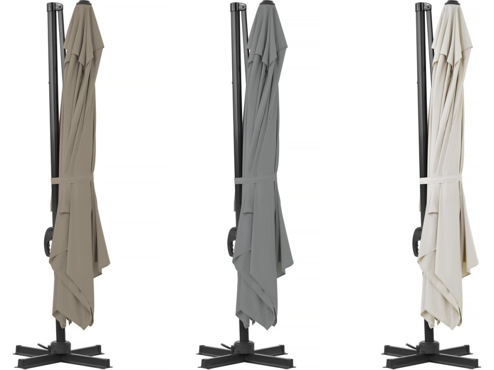Ombrellone da giardino decentrato "Sky 4" - Dimensioni: 370 x 278 x 261 cm - Peso: 21,7 kg - Struttura: Alluminio/Metallo - Telo: Tessuto - Ecrù - Piastrelle per ombrellone da giardino - 51 x 51 x 12 cm - Dimensione piastrella assemblata: 103 x 103 x 12 cm - Da riempire con acqua o sabbia - Progettato per ombrelloni con base a croce - Realizzato in polietilene ad alta densitàOmbrellone a sbalzo "Sky 4" - 3 x 4 m - Écru - Piastre zavorrate incluseL'ombrellone "Sky 4" è la soluzione ideale per offrire ombra e comfort nei vostri spazi esterni. Con le sue generose dimensioni di 370 x 278 x 261 cm, copre un'ampia superficie, perfetta per ospitare diverse persone attorno a un tavolo o per creare una zona relax. La sua struttura in alluminio e metallo unisce robustezza e durevolezza, offrendo un'eccellente resistenza agli agenti atmosferici e alla corrosione.L'ombrellone è dotato di una pratica manovella e di un sistema di regolazione dell'inclinazione, che consente di regolarlo facilmente in base alla posizione del sole. Il suo elegante tessuto Écru resistente ai raggi UV crea un'atmosfera calda e si integra armoniosamente in qualsiasi arredamento.Questo ombrellone non è solo resistente, ma anche di facile manutenzione, garantendo un utilizzo prolungato. Perfetto per godersi appieno il proprio patio, giardino o balcone in qualsiasi stagione!