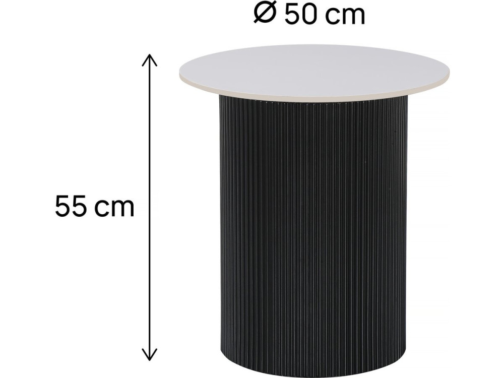 L'altezza di 55 cm è leggermente superiore alla media dei tavolini da divano, il che lo rende ideale per essere affiancato a braccioli alti o per essere usato come comodino accanto a letti moderni con materassi alti.
