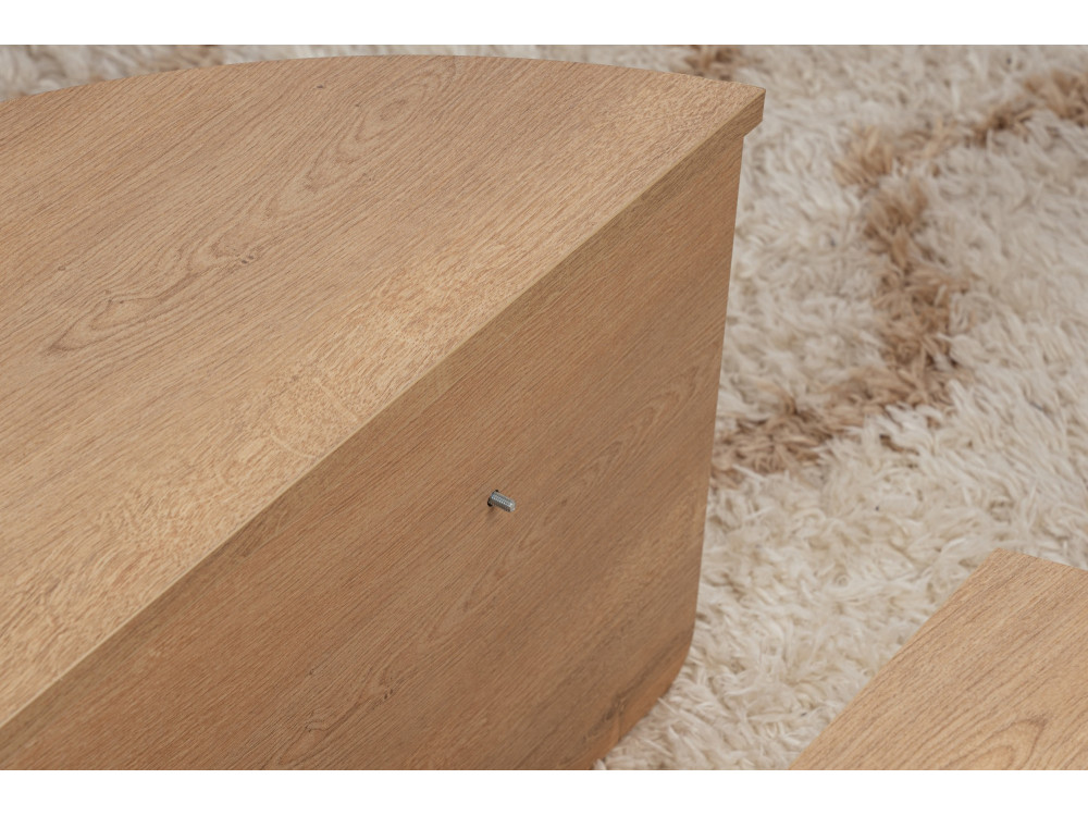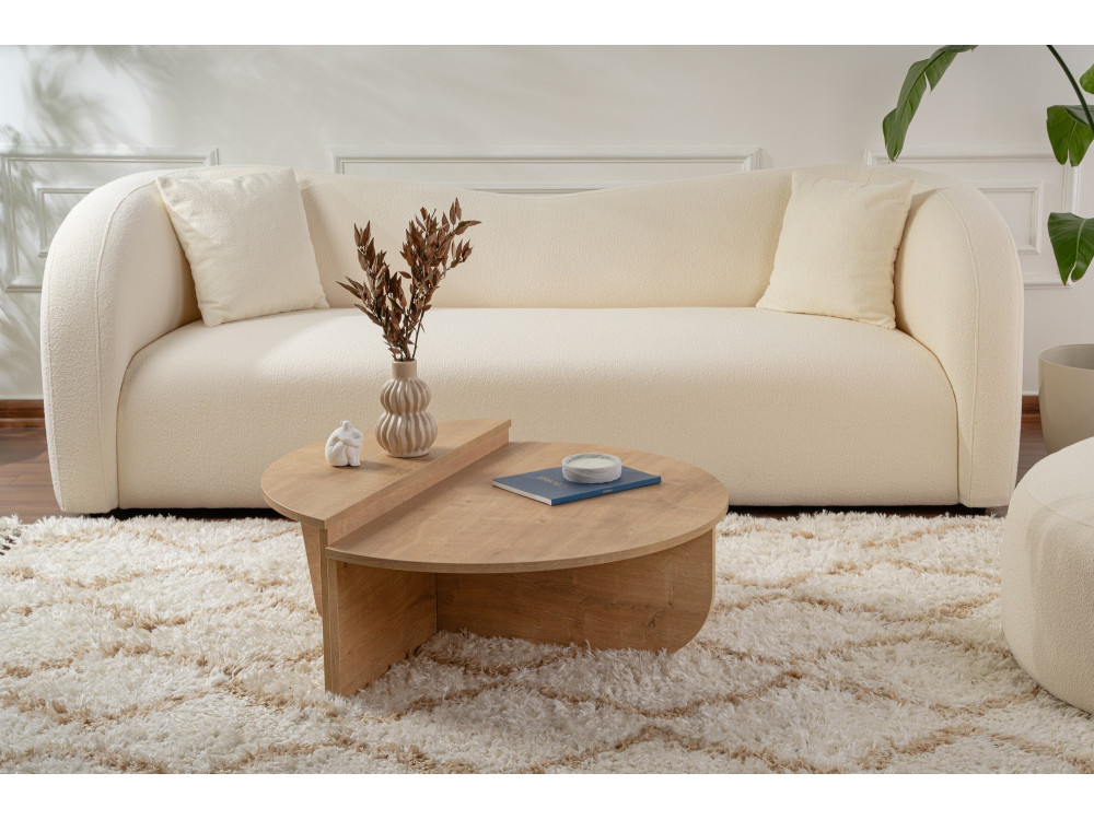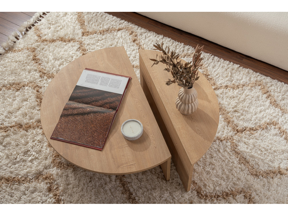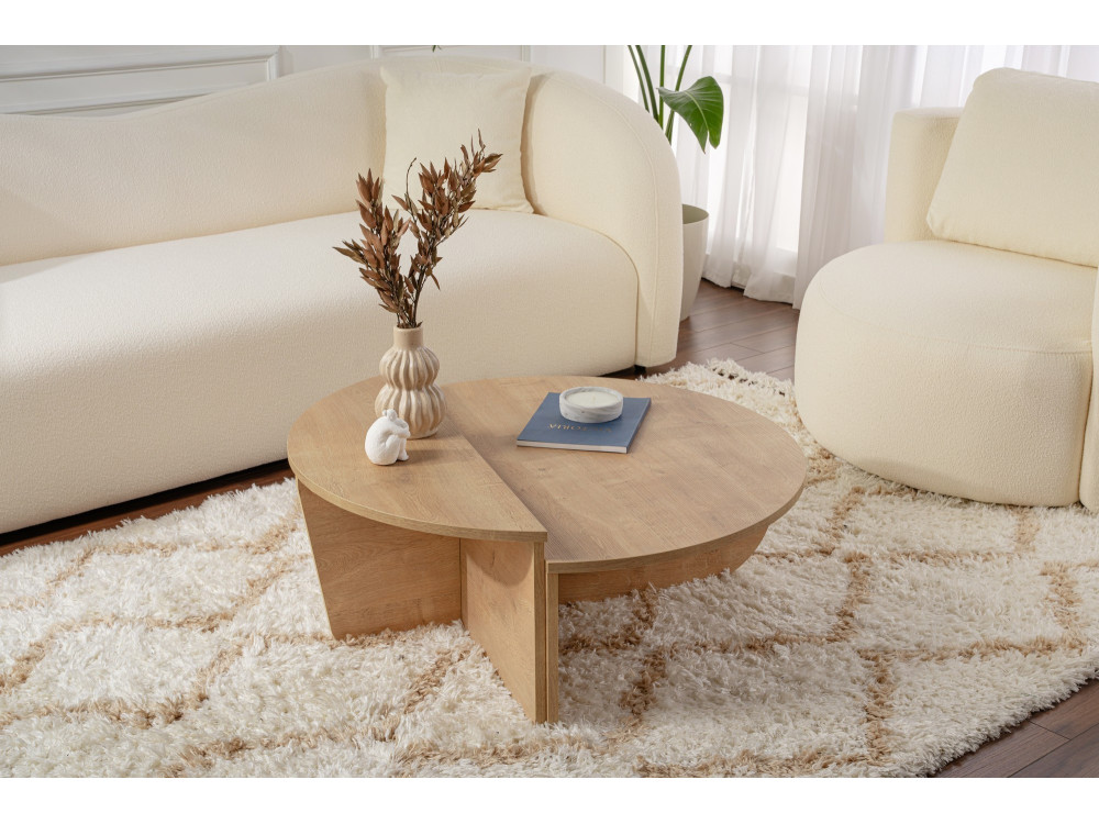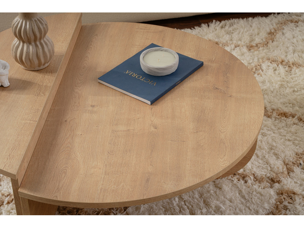 Il tavolino da caffè "Orion" (ART. GHF146591) è un complemento d'arredo che emana calore naturale e solarità. La finitura Rovere Miele è una delle più amate nell'interior design contemporaneo: si allontana dalle tonalità fredde per abbracciare sfumature dorate e ambrate, capaci di rendere istantaneamente più "domestico" e accogliente anche il salotto più minimale.