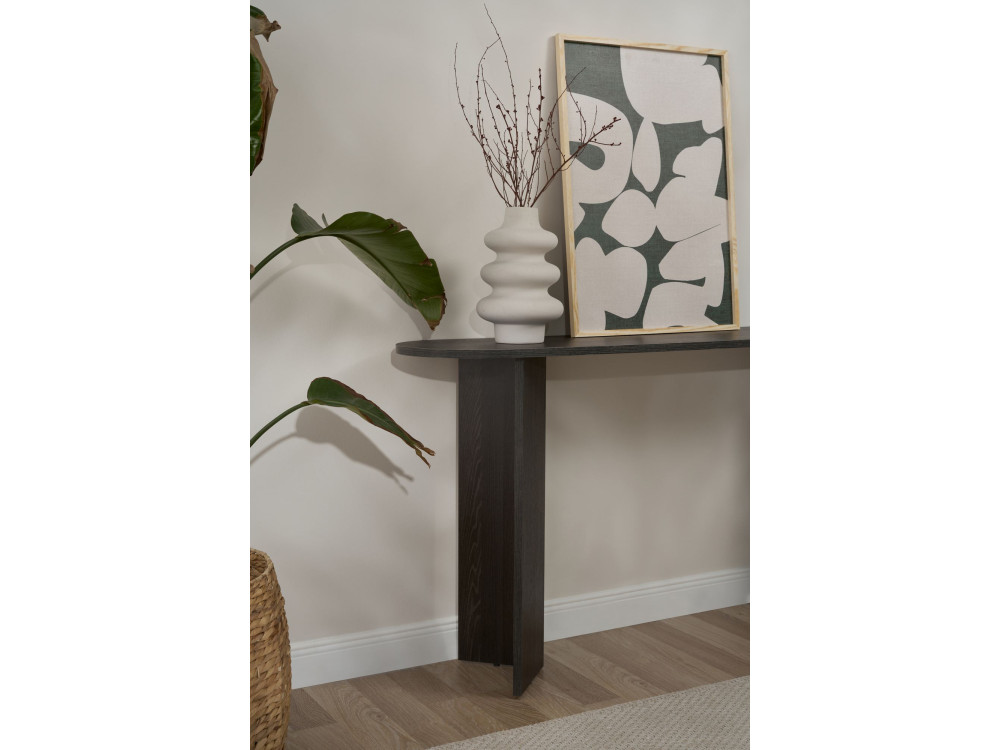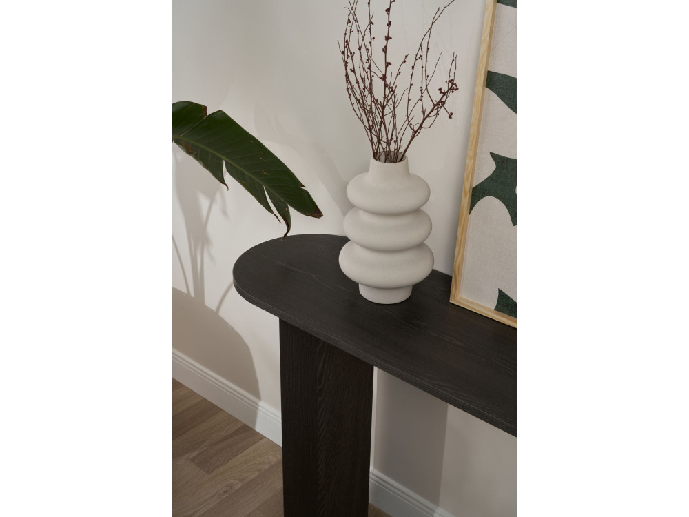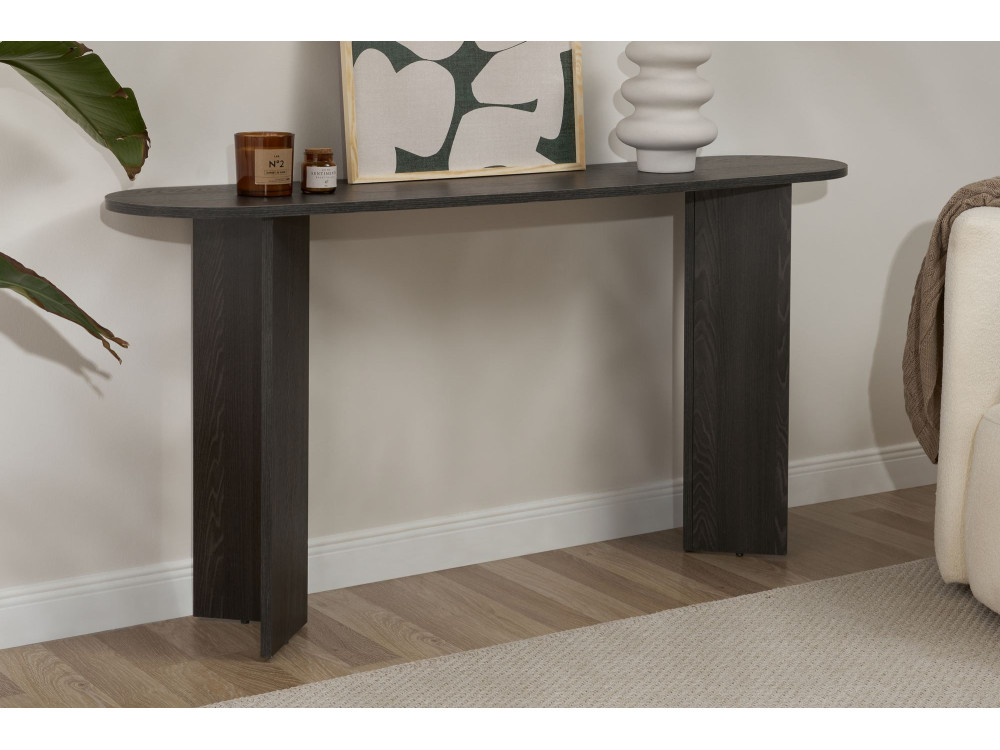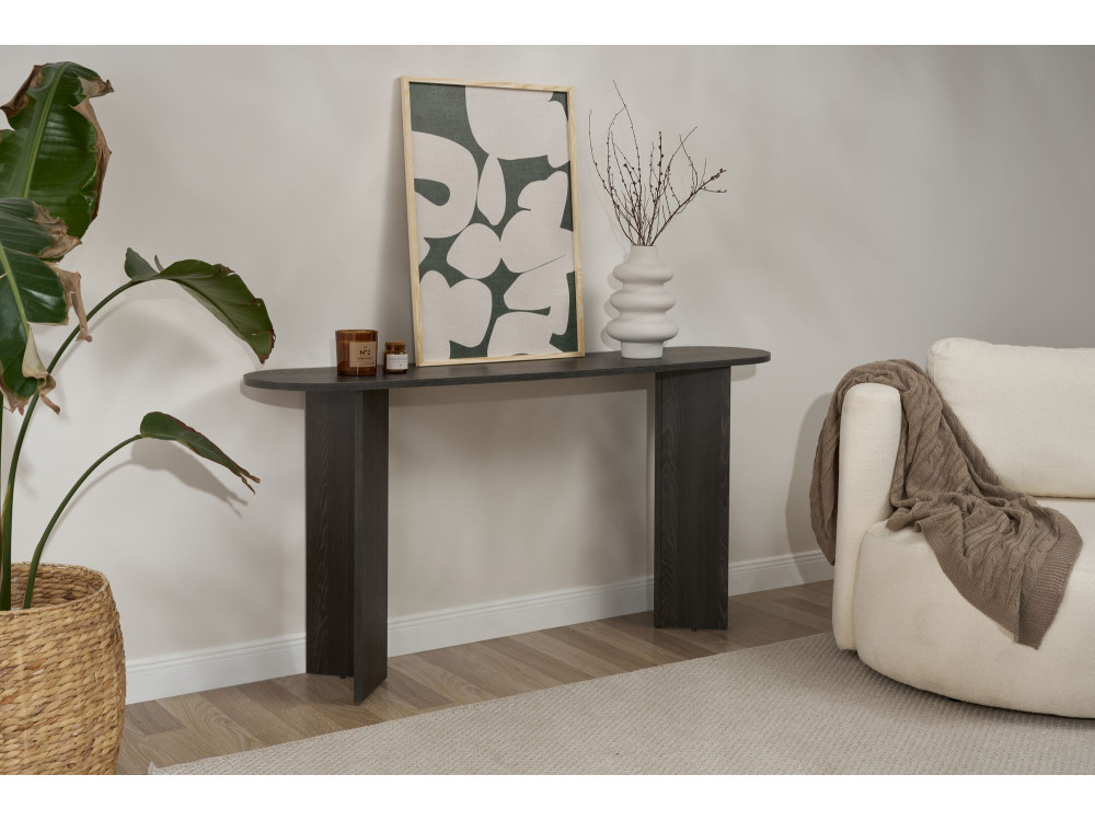 La consolle Sira torna nella collezione con una finitura intrigante e moderna: il Nero Chiaro. Questa tonalità si discosta dal nero assoluto per offrire una sfumatura più morbida, quasi un antracite molto profondo o un "fumé" solido. Mantiene l'eleganza del colore scuro ma risulta meno aggressiva alla vista, permettendo di percepire meglio le linee del mobile e la leggera trama del legno sottostante.