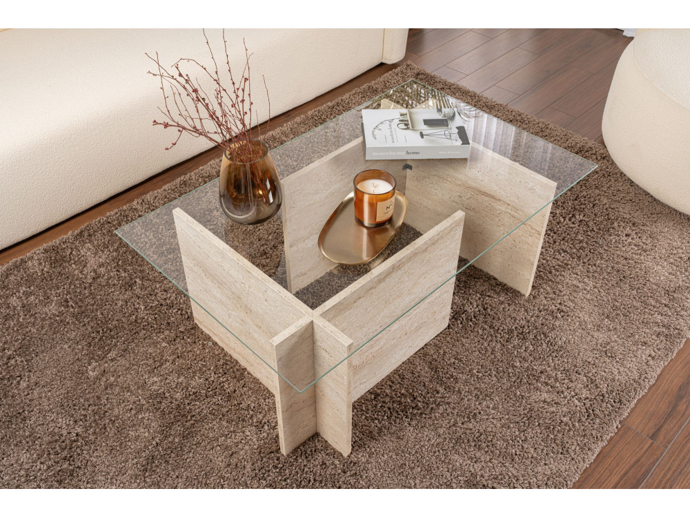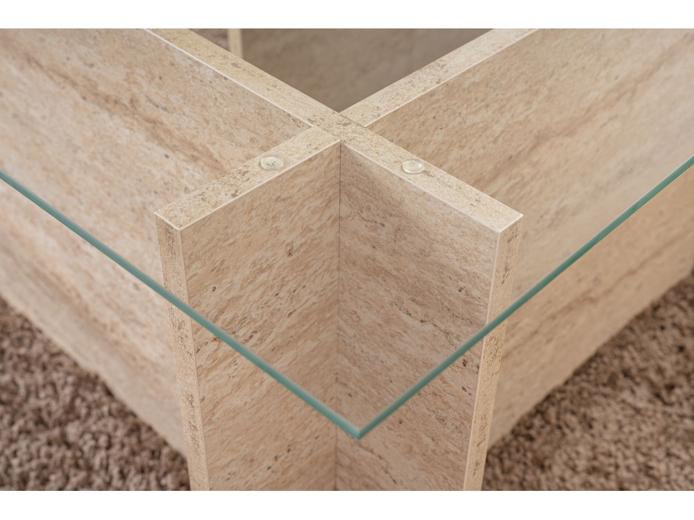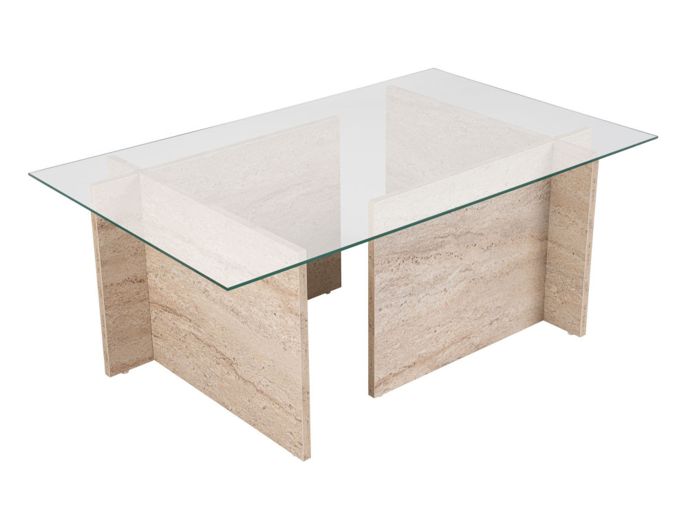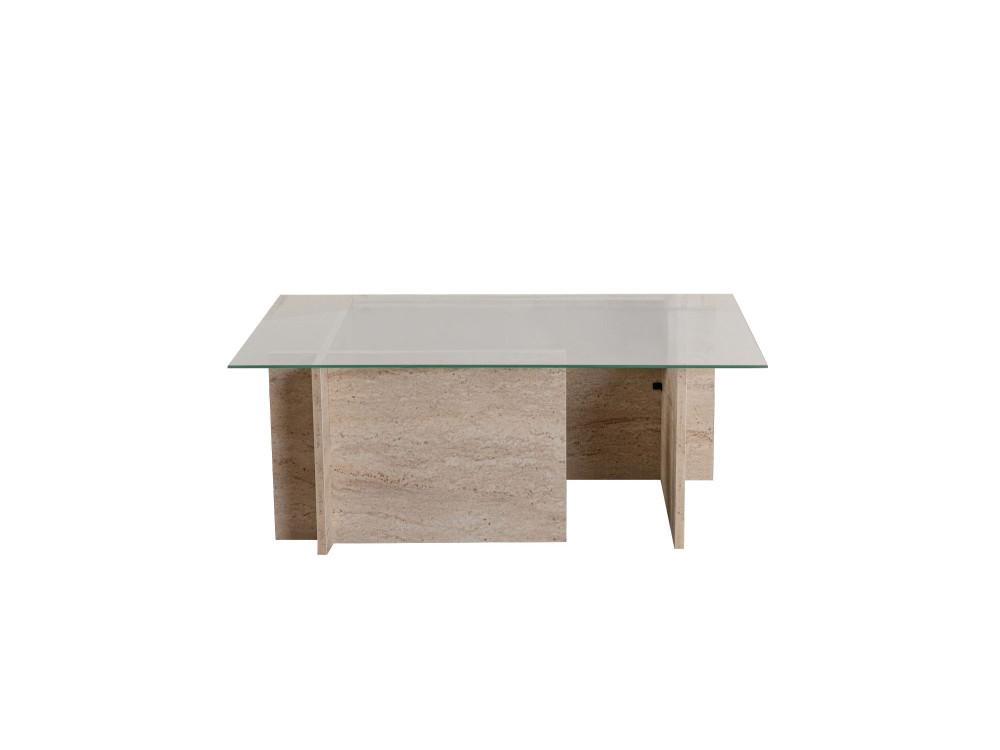 Il modello Vetrino è un pezzo che gioca con le proporzioni e le texture per offrire una superficie d'appoggio generosa e un'estetica ispirata ai materiali lapidei classici. La finitura Travertino richiama la porosità e le sfumature calde della pietra naturale, conferendo al living un'aura di eleganza senza tempo, pur mantenendo la praticità e la leggerezza del legno.