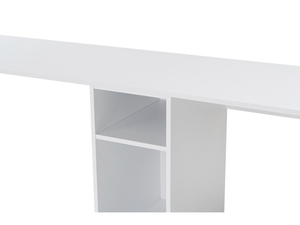 Ampiezza Senza Peso (240 cm): Nonostante la lunghezza imponente di 2,4 metri, la scelta del bianco totale impedisce alla scrivania di "soffocare" la stanza. Al contrario, agisce come una sorta di riflettore luminoso, rendendo l'ambiente di lavoro visivamente più vasto e arioso.