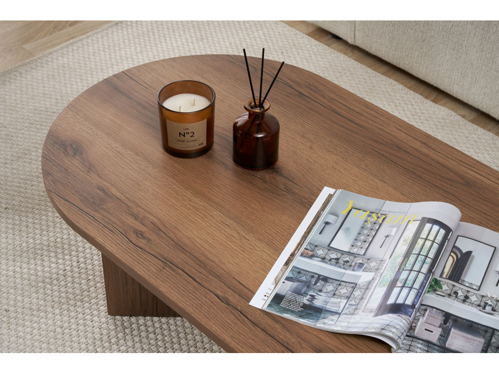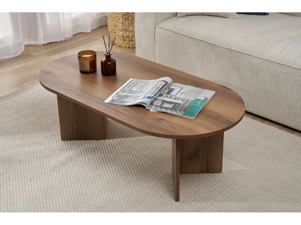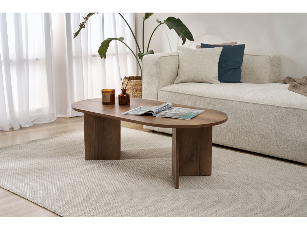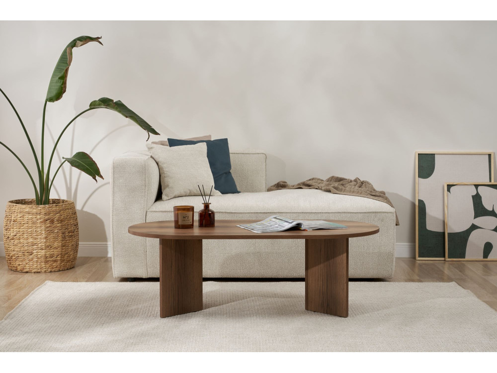 Concludiamo questa lunga carrellata con il Tavolino "Sabbia" (ART. GHF146647). Sebbene abbiamo già incontrato la finitura Noce in questa linea, questo specifico codice articolo rappresenta la conferma definitiva di un pilastro dell'arredamento: il connubio tra la forma generosa e la nobiltà dell'essenza scura.