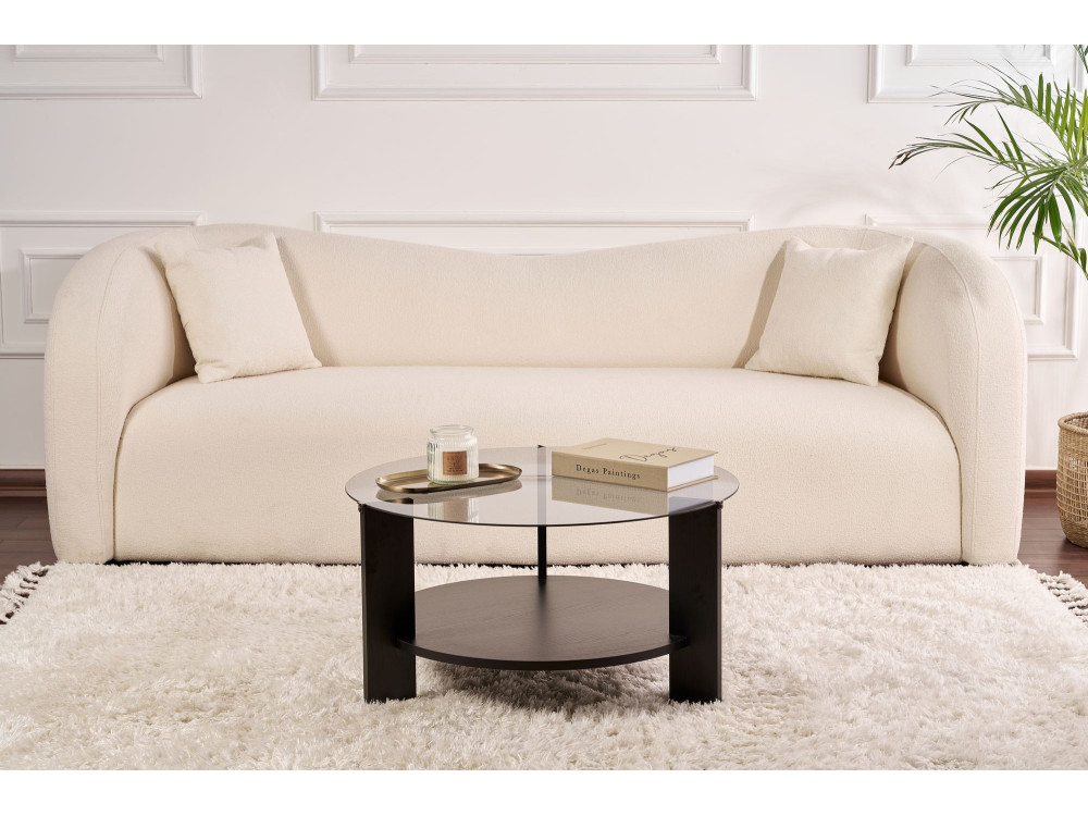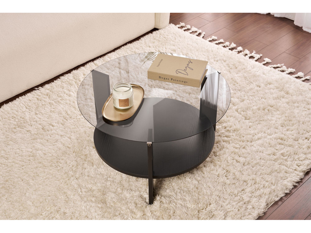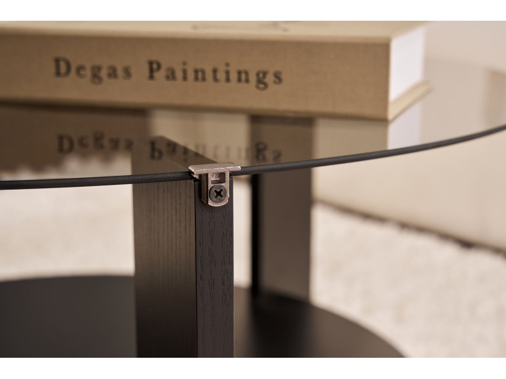 Legno Nero (Bois Noir): La struttura scura definisce i bordi del tavolino come un tratto di inchiostro deciso. Il nero opaco del legno conferisce una matericità che contrasta con la lucentezza del piano.