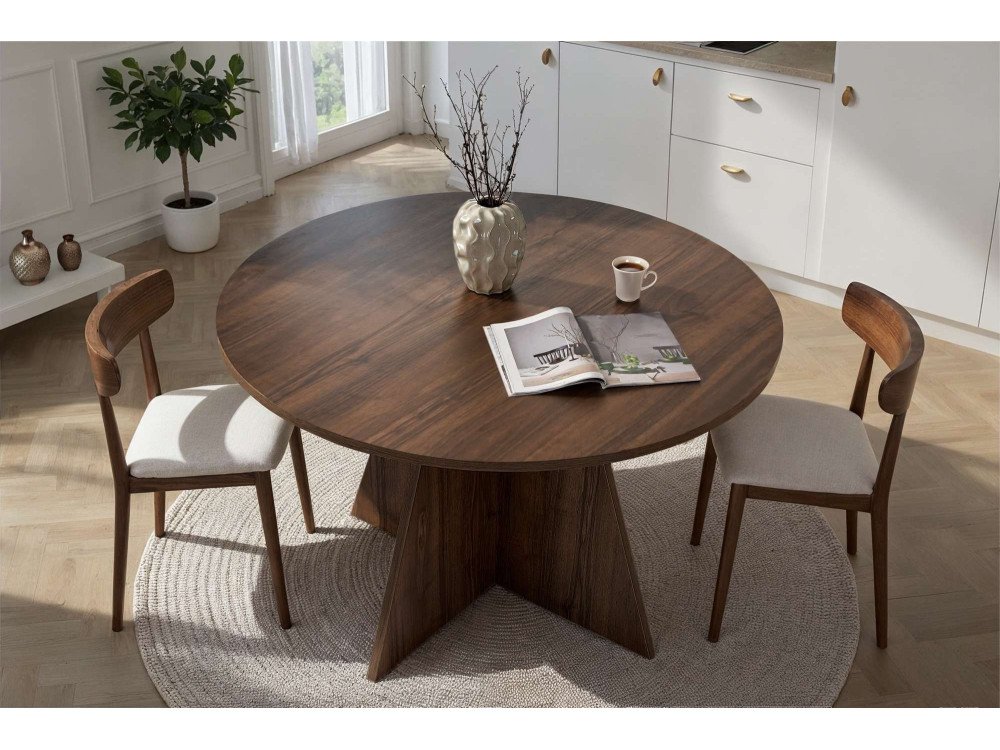 Se il Pino era luce e il Travertino era scultura, il Virella in Noce è l'essenza dell'accoglienza conviviale. È il tavolo che trasforma ogni cena in un evento, portando quel calore tipico del design italiano degli anni '50 e '60 rivisitato in chiave moderna.