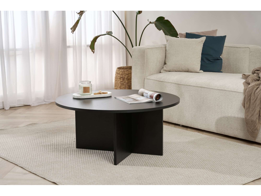 Volume Centrale (90 x 90 cm): Con una superficie di 0,81 $m^2$, il Sun nero definisce con precisione il centro della zona relax. In questa finitura scura, il tavolo agisce come un magnete visivo, perfetto per essere posizionato sopra un tappeto a contrasto (grigio chiaro, panna o con pattern geometrici).