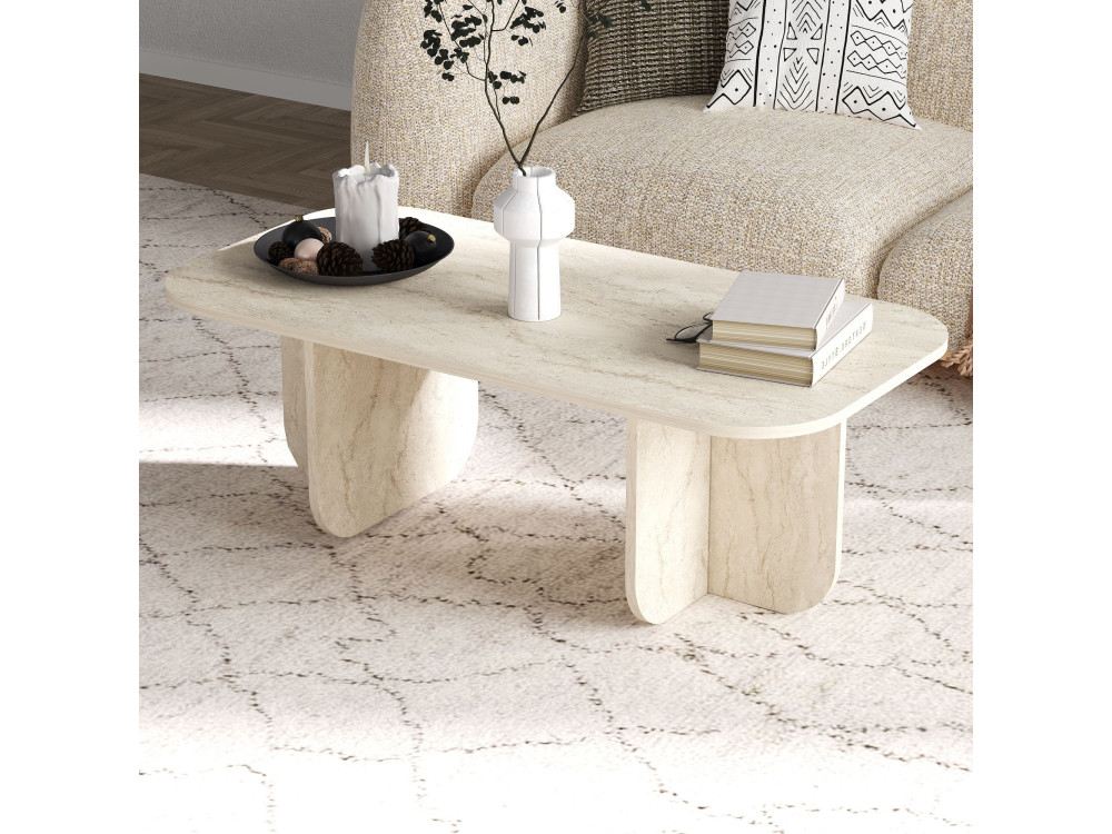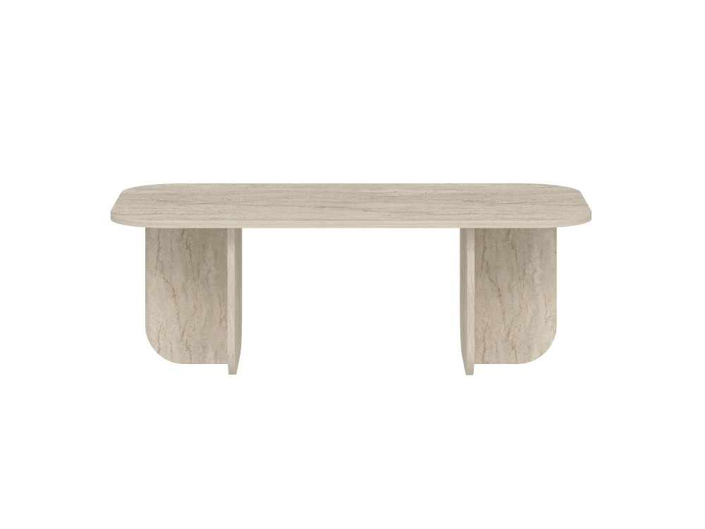 Se il modello Memo era una soluzione "low-profile" e zen, il Becaj è un tavolino da caffè nel senso più completo del termine: lungo 120 cm e alto 41 cm, ha le proporzioni perfette per diventare il fulcro di un salotto di ampie dimensioni. In finitura Travertino, questo pezzo eleva il materiale minerale a una forma scultorea imponente.