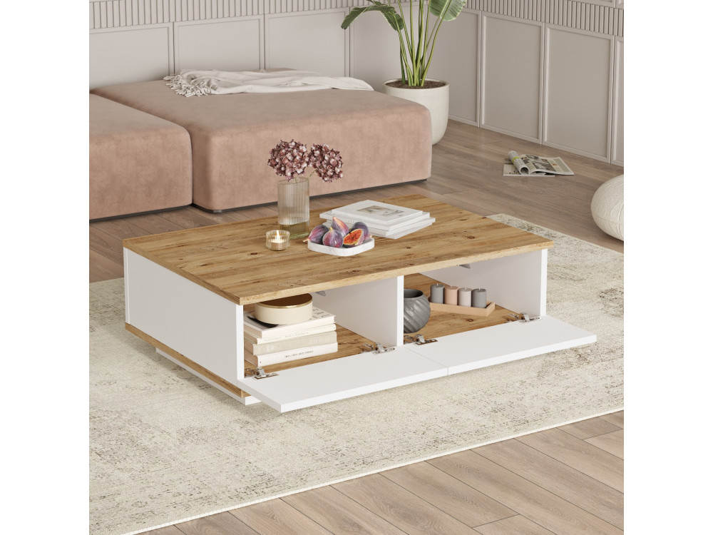 Il tavolino da caffè "FR14" (ART. GHF146736) rappresenta l'evoluzione ultra-moderna del design low-profile. La finitura Pino Atlantico Bianco è una scelta cromatica sofisticata: mantiene le venature naturali e materiche del legno di pino, ma le declina in una tonalità sbiancata e luminosa.