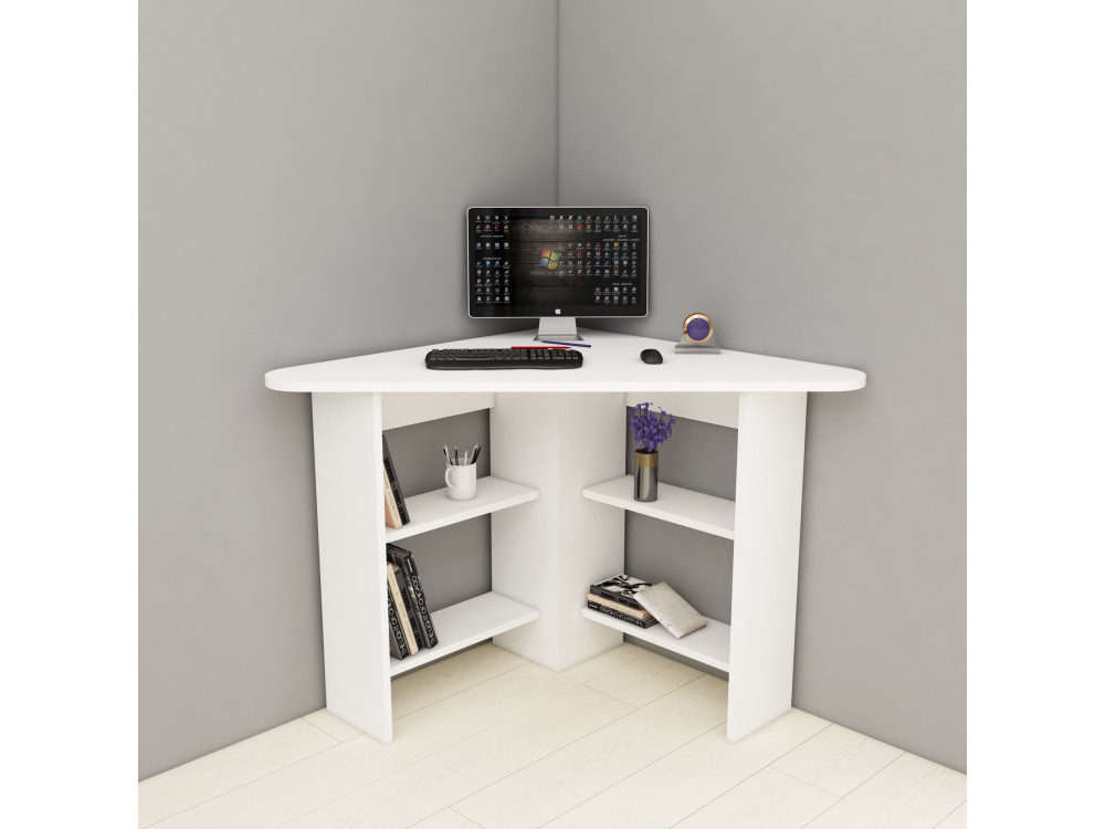 La scrivania "Corner" (ART. GHF146798) è la quintessenza dell'ottimizzazione degli spazi. Progettata specificamente per abitare gli angoli spesso inutilizzati della casa, questa postazione trasforma un punto morto in un ufficio domestico funzionale, compatto e visivamente leggero grazie alla finitura Bianco totale.
