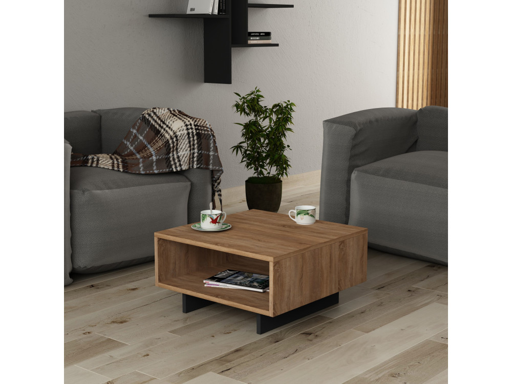 Il tavolino da caffè "Hola" (ART. GHF146808) è un piccolo gioiello di design geometrico che punta tutto sulla compattezza e su una finitura di grande impatto: il Rovere Antracite. Questa tonalità scura e profonda, unita alle venature naturali del rovere, conferisce al mobile un aspetto "urban-chic" perfetto per ambienti maschili, minimalisti o industrial.