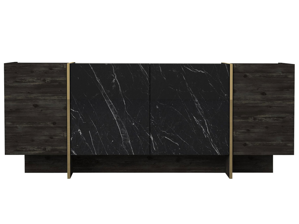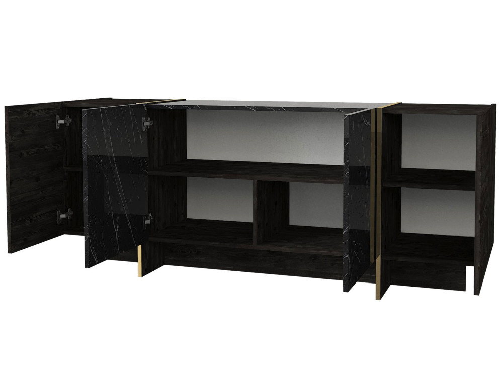 Il buffet "Veyron" (ART. GHF146875) è un pezzo d'arredamento di grande prestigio che si colloca al vertice della gamma per eleganza e impatto scenico. La combinazione Noir Or (Nero e Oro) non è solo una scelta cromatica, ma una dichiarazione di stile "Glamour Contemporaneo" che trasforma una semplice credenza nel punto focale assoluto della sala da pranzo o del salone.