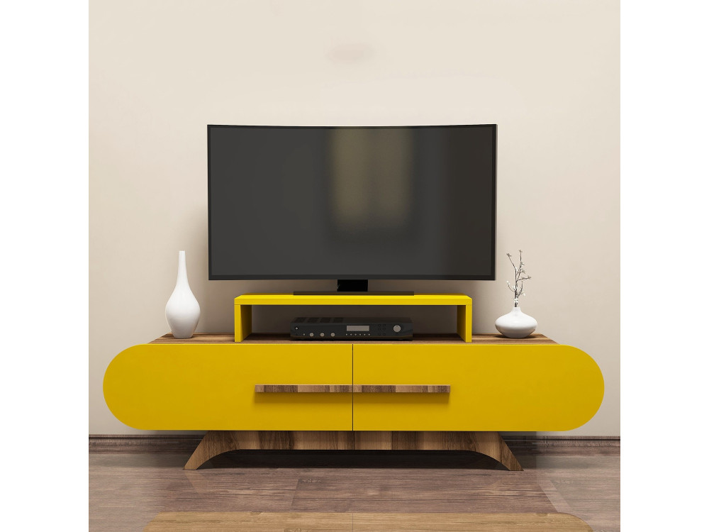 Il modello Rose nella finitura Noce Giallo è un pezzo che non teme di mostrare il carattere del legno. Se la versione Crema era orientata verso la delicatezza e la neutralità, il Noce Giallo è una dichiarazione di stile: le sue sfumature calde, quasi ambrate, ricordano il colore del rovere naturale sotto la luce del sole, rendendo il mobile TV un elemento vivo e vibrante all'interno del tuo progetto d'arredo.