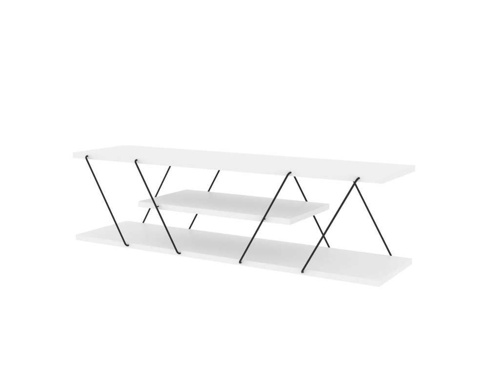 Questa variante del modello April introduce un dinamismo visivo assente nella versione monocromatica antracite. Il contrasto tra il Bianco e il Nero trasforma un mobile puramente funzionale in un elemento grafico che definisce la parete multimediale con uno stile "Optical" o minimalista rigoroso.