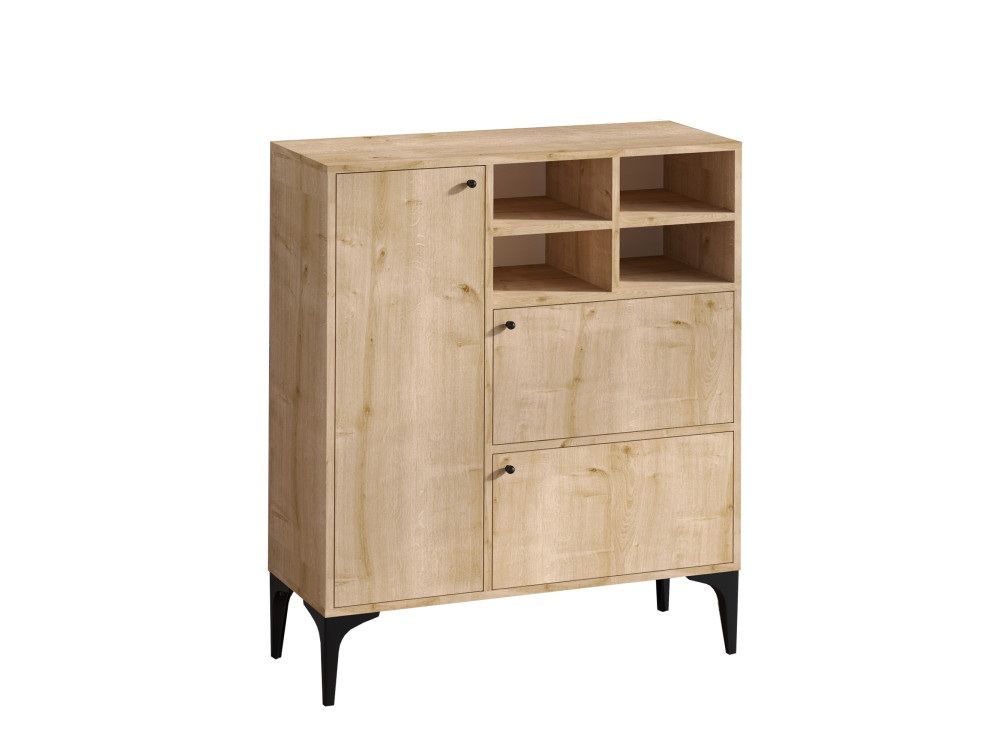 Con i suoi 125 cm di altezza, la "Ewa" si posiziona come una via di mezzo perfetta tra una credenza bassa e una vetrina, offrendo un piano superiore utile per esporre oggetti ad altezza occhi.