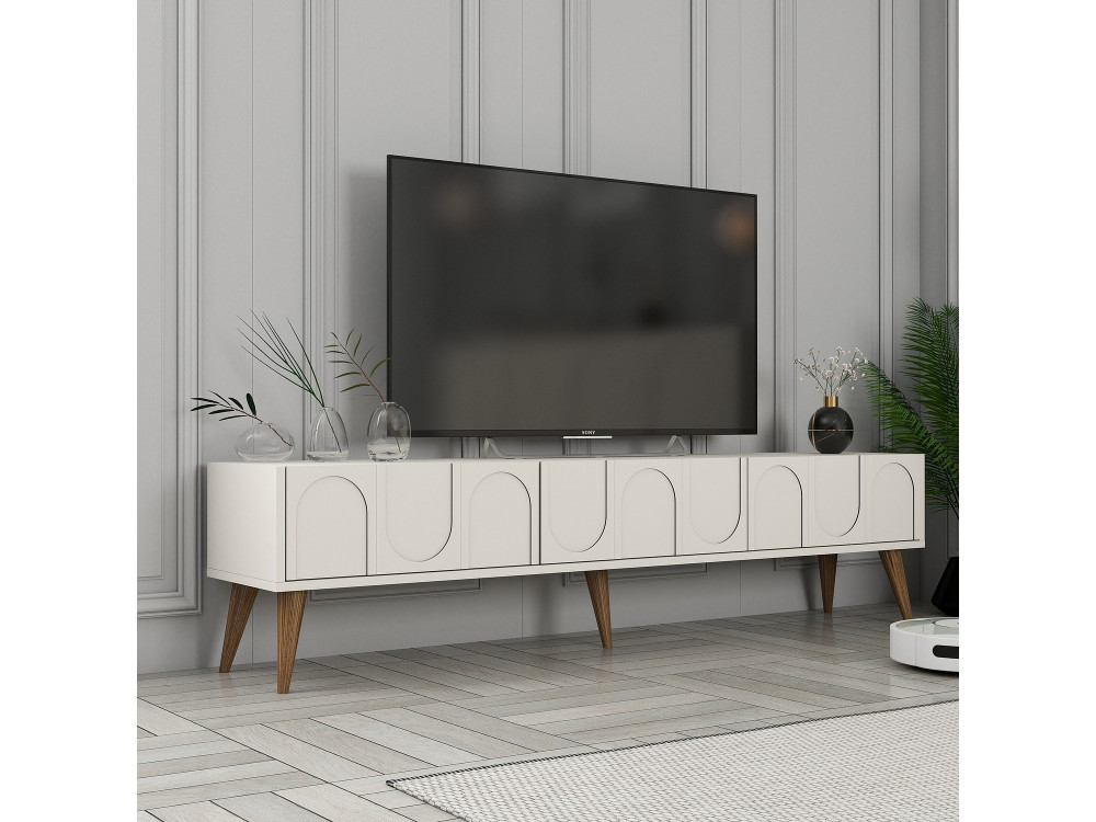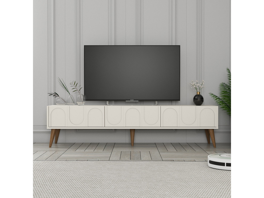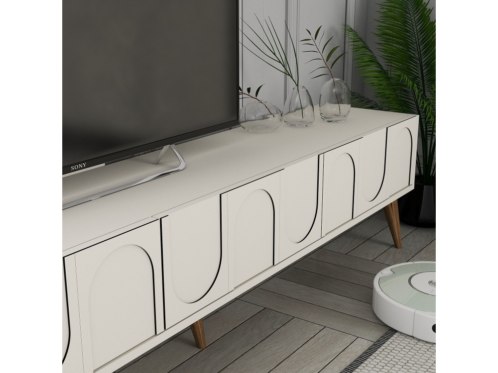 Lunghezza (180 cm): Ideale per accogliere i grandi schermi da 75" (circa 167 cm di larghezza), lasciando lo spazio necessario per non far apparire il televisore sacrificato.
