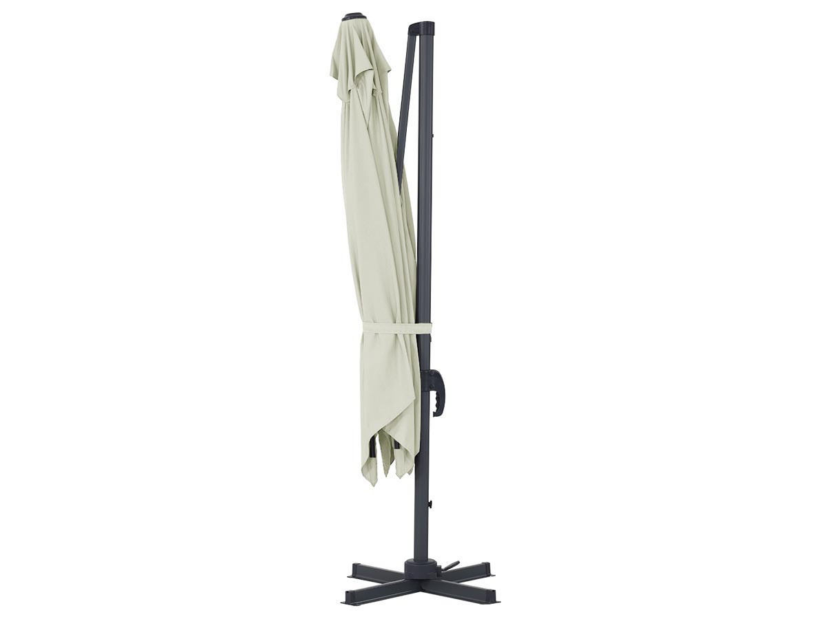 Ombrellone da giardino decentrato - Struttura in alluminio - 3 x 3 m - Ecru - Telo poliestere 200 gr/m2 - Lastre non incluseOmbrellone da giardino deportato Sun 3" in alluminioOggi, il parasole si è evoluto notevolmente con la comparsa sul mercato del parasole deportato.Per proteggerti dal sole e dai piccoli acquazzoni, ti proponiamo l'ombrellone deportato Sun 3. È l'accessorio indispensabile per il tuo giardino o terrazza.La sua struttura in alluminio gli conferisce la massima durata e resistenza alle condizioni esterne. Il suo tessuto in poliestere garantisce un'ombreggiatura efficace e filtra i raggi del sole.