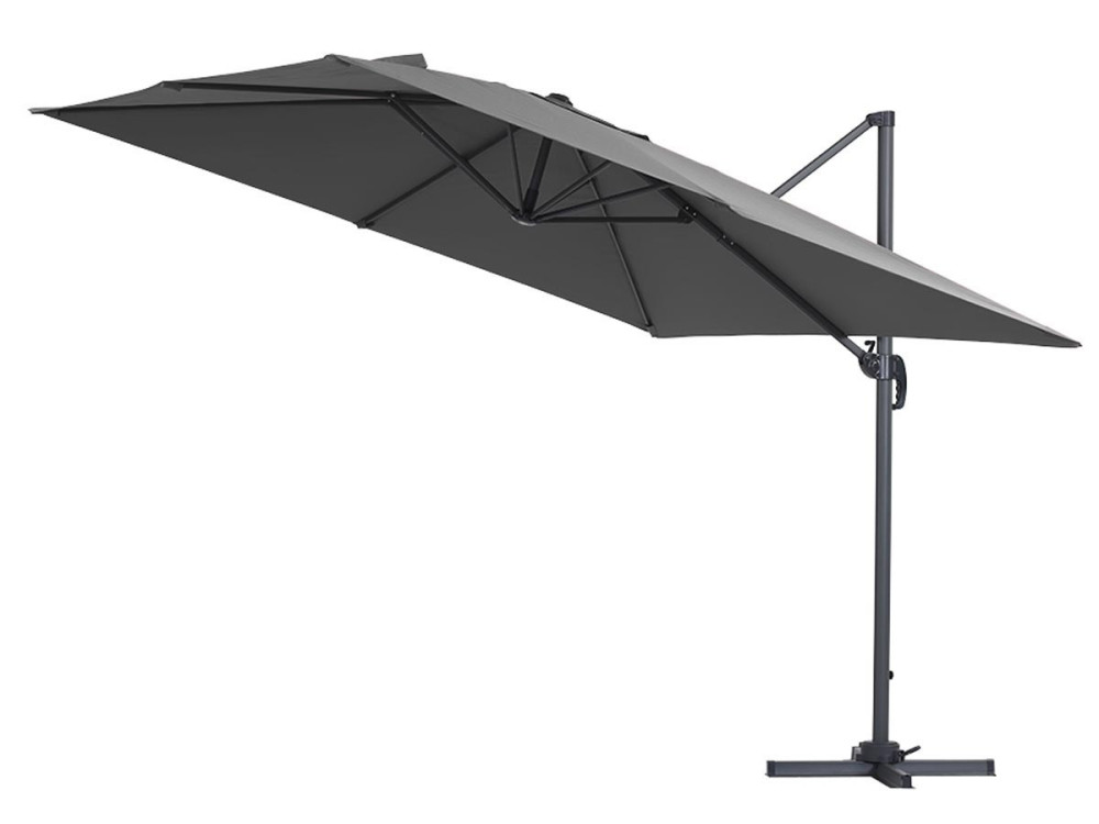 Ombrellone da giardino decentrato - Struttura in alluminio - 3 x 3 m - Grigio - Telo poliestere 200 gr/m2 - Lastre non incluseOmbrellone da giardino deportato Sun 3" in alluminioOggi, il parasole si è evoluto notevolmente con la comparsa sul mercato del parasole deportato.Per proteggerti dal sole e dai piccoli acquazzoni, ti proponiamo l'ombrellone deportato Sun 3. È l'accessorio indispensabile per il tuo giardino o terrazza.La sua struttura in alluminio gli conferisce la massima durata e resistenza alle condizioni esterne. Il suo tessuto in poliestere garantisce un'ombreggiatura efficace e filtra i raggi del sole.