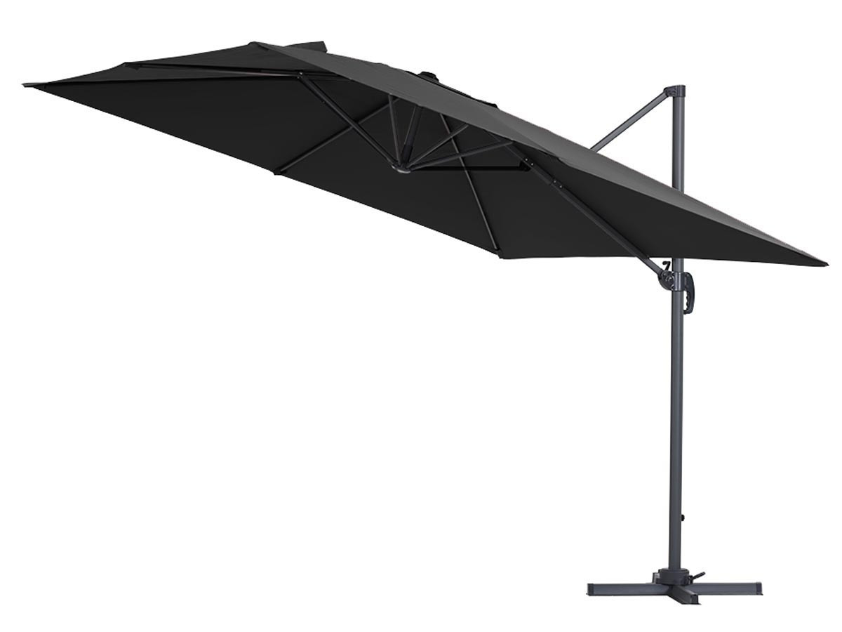 Ombrellone da giardino decentrato - Struttura in alluminio - 3 x 3 m - Nero - Telo poliestere 200 gr/m2 - Lastre non incluseOmbrellone da giardino deportato Sun 3" in alluminioOggi, il parasole si è evoluto notevolmente con la comparsa sul mercato del parasole deportato.Per proteggerti dal sole e dai piccoli acquazzoni, ti proponiamo l'ombrellone deportato Sun 3. È l'accessorio indispensabile per il tuo giardino o terrazza.La sua struttura in alluminio gli conferisce la massima durata e resistenza alle condizioni esterne. Il suo tessuto in poliestere garantisce un'ombreggiatura efficace e filtra i raggi del sole.
