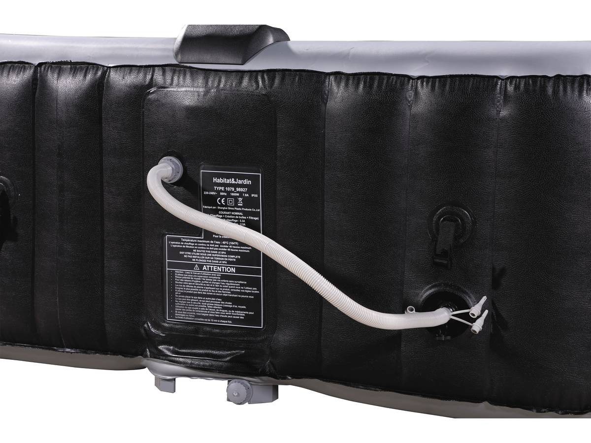 La Spa gonfiabile Articolo GHF98927 è un elemento d arredo tecnico progettato per offrire un esperienza di idromassaggio completa in ambito domestico. Contraddistinta da un design moderno con struttura esterna nera effetto resina intrecciata e interno grigio, questa vasca combina un estetica decisa con la resistenza del PVC laminato. Con dimensioni di 185 x 185 x 65 centimetri, la spa è studiata per ospitare comodamente 6 persone.