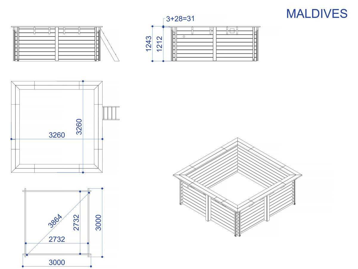 Materiali di Qualità Superiore: Pareti massicce da 42/45 mm in legno trattato per resistere a parassiti e intemperie, completate da un liner azzurro da 75/100 che dona all'acqua una limpidezza residenziale cristallina.