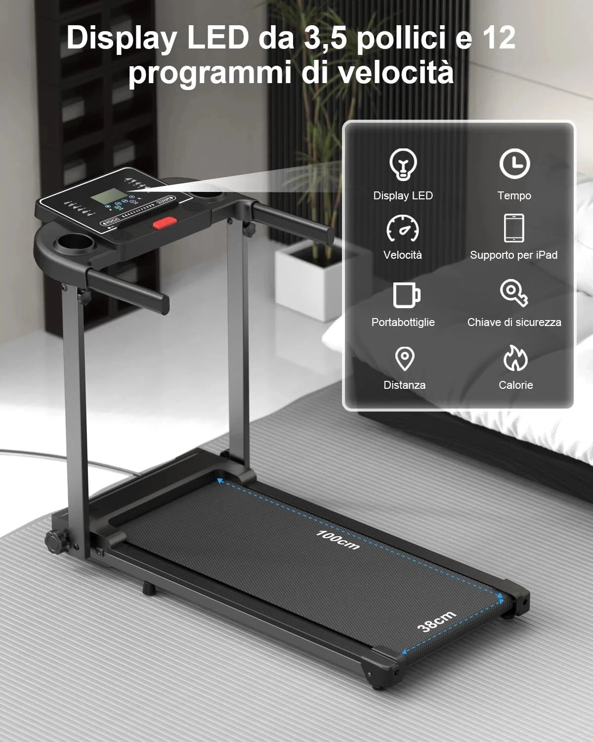 Il display LED integrato ti permette di tenere sempre sotto controllo i parametri fondamentali come velocità, distanza percorsa e calorie bruciate, mentre il supporto per tablet trasforma la tua sessione di fitness in un momento di intrattenimento. La caratteristica vincente è la sua natura salvaspazio: arriva già assemblato e pronto all'uso, perfetto per essere riposto con facilità in appartamenti o uffici. Ti consiglio questo acquisto se desideri un prodotto affidabile e tecnologico che ti aiuti a mantenere uno stile di vita attivo con la massima comodità.