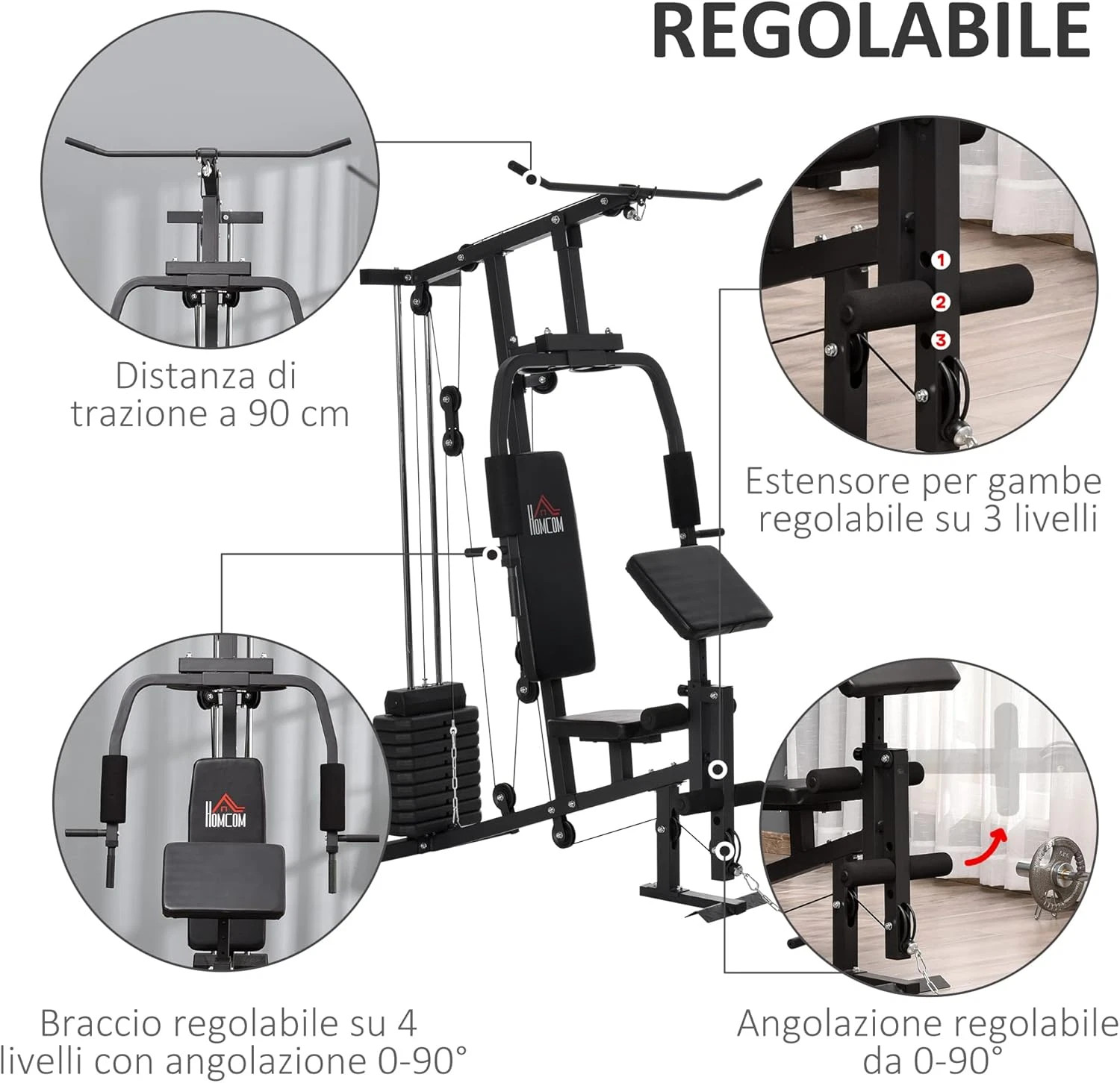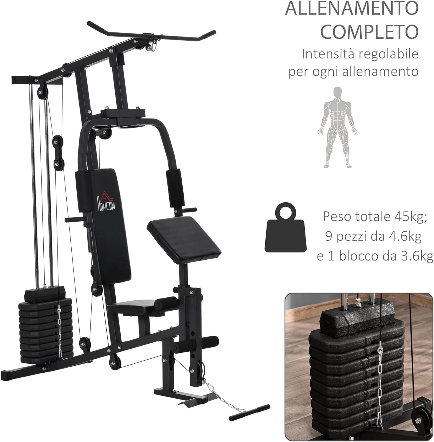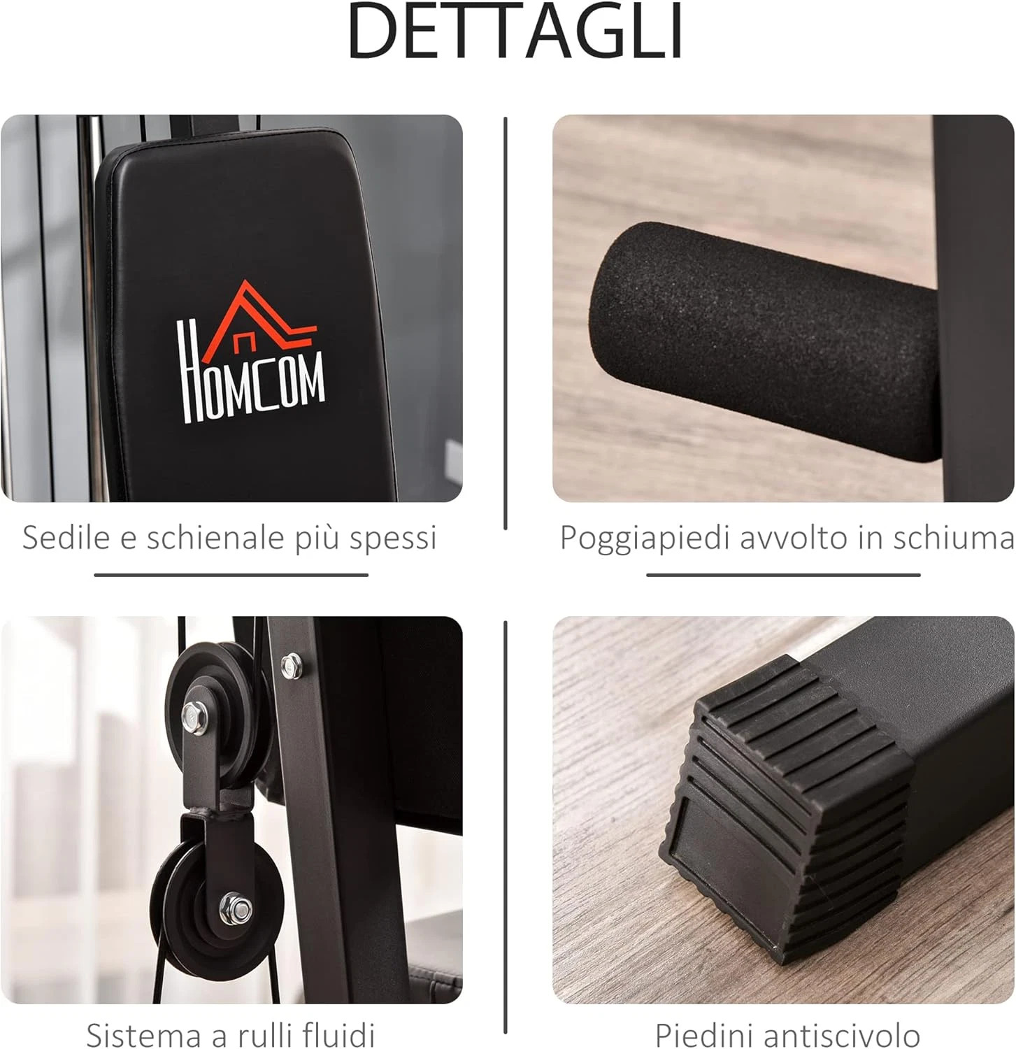 Il design total black conferisce all'attrezzo un aspetto moderno e grintoso, perfetto per una home gym d'élite. La stazione include carrucole ad alta resistenza e imbottiture ergonomiche pensate per offrire il massimo comfort anche durante le serie più lunghe. Ti consiglio l'acquisto di questo macchinario se cerchi una soluzione definitiva "all-in-one" che non scenda a compromessi sulla qualità costruttiva, ideale per chi vuole seguire programmi di allenamento completi e variati, dalla tonificazione al potenziamento muscolare estremo.
