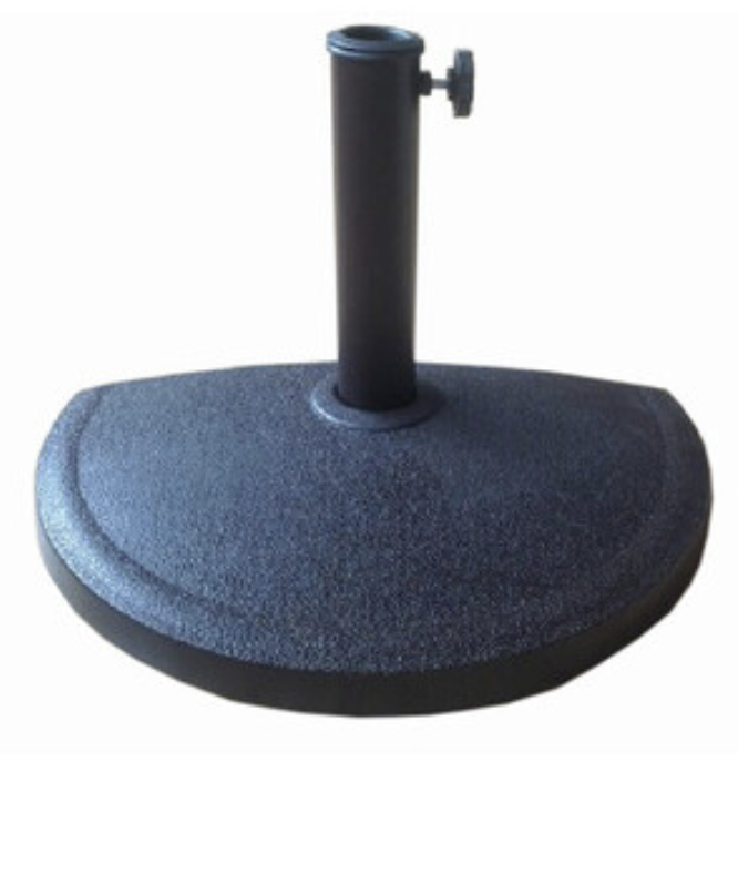 Stabilità Specifica: Con un peso di circa 10 kg totali, questa base è dimensionata esclusivamente per mezzi-ombrelloni o ombrelloni da balcone molto leggeri. Data la forma asimmetrica, non è adatta per ombrelloni standard a cerchio intero, poiché si ribalterebbe verso il lato mancante.