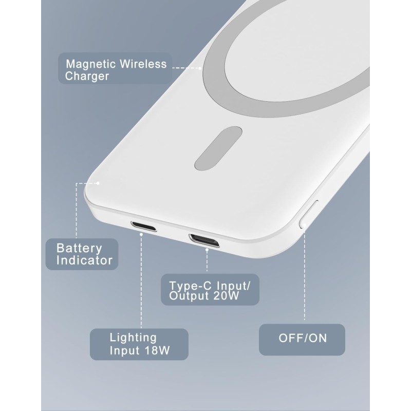 Con l'ART. SMT10457, la libertà energetica sposa il minimalismo magnetico. Questo Power Bank MagSafe da 5000mAh in finitura Bianco Neve è l'accessorio che risolve l'ansia da batteria scarica senza l'ingombro di cavi, integrandosi perfettamente con il design pulito della tua Libreria Elysian Bianco Oro.