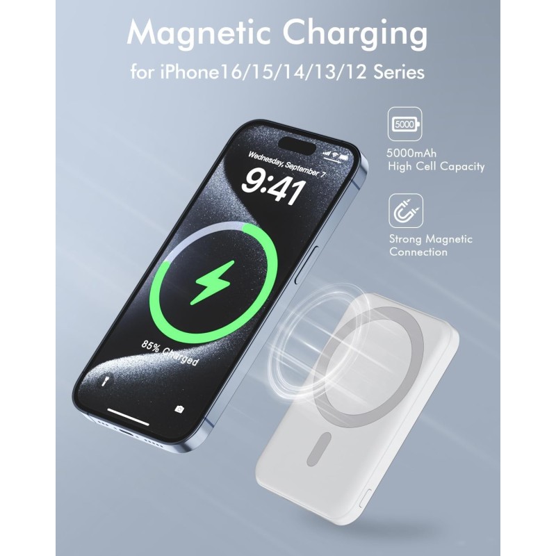 Aggancio Magnetico High-Grip: I magneti interni sono calibrati per allinearsi istantaneamente alla bobina di ricarica dell'iPhone. Una volta "cliccato" sul retro, il power bank rimane saldo, permettendoti di continuare a scorrere la tua Master List 2026 senza interruzioni.