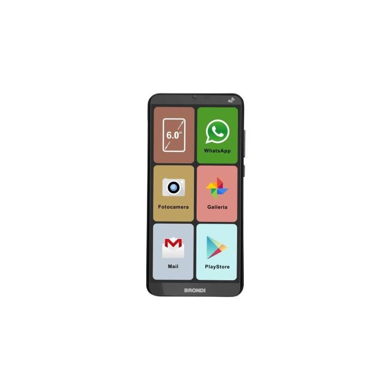 Con l'ART. SMT8573, entriamo nel capitolo più avanzato del design inclusivo: il Brondi AMICO SMARTPHONE XL, colorazione Nero, versione ITALIA.