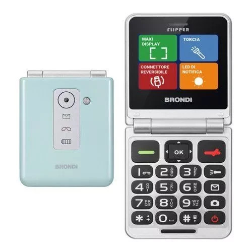 L'articolo TLS10281072 (spesso abbreviato come 10281072) identifica il cellulare Brondi Flipper nella colorazione Green Water Metal (Verde Acqua Metallizzato).