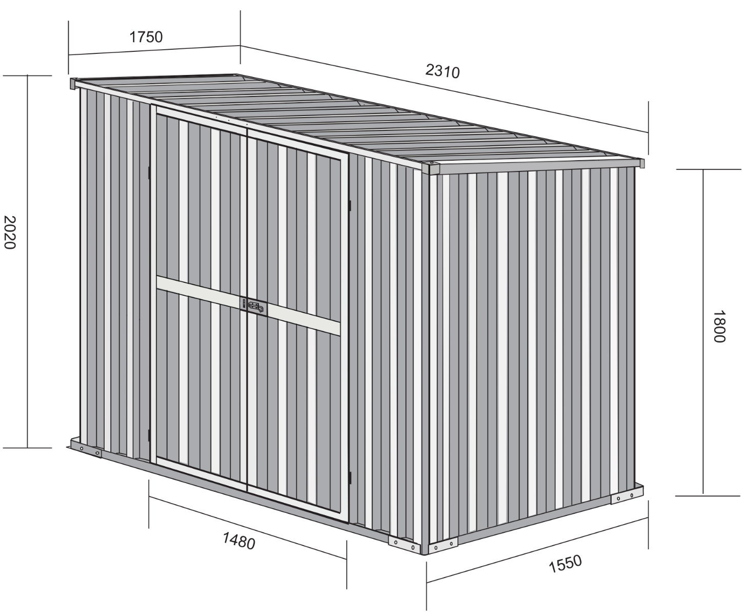 Dimensioni Esterne (Tetto incl.) 2.31 m (L) x 1.75 m (P) x 2.02 m (A)