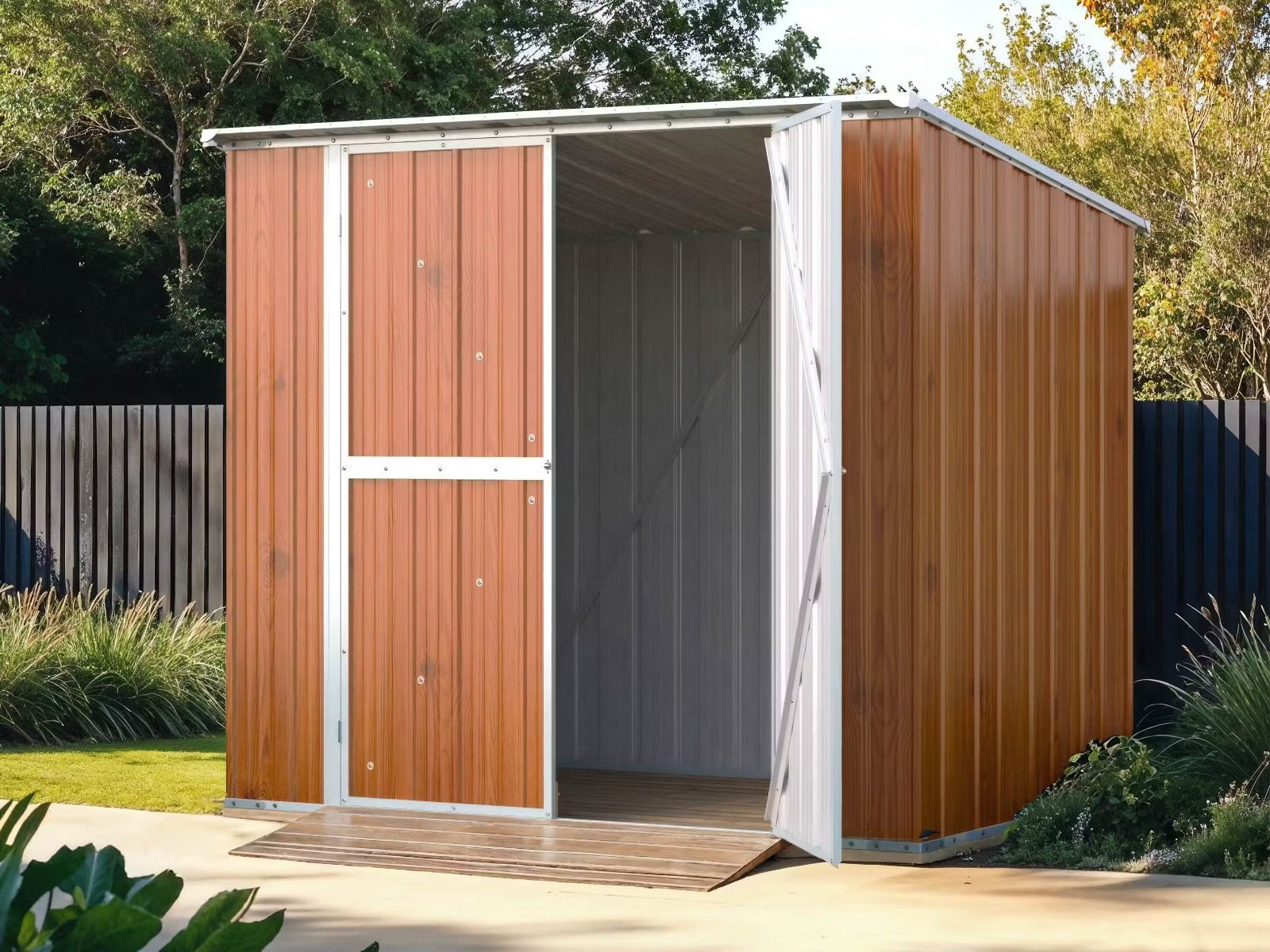 Realizzato in acciaio zincato di alta qualità, questo modello combina la bellezza visiva delle venature del legno con l'indistruttibilità del metallo, garantendo una resistenza totale a muffe, parassiti e intemperie senza alcuna necessità di manutenzione.