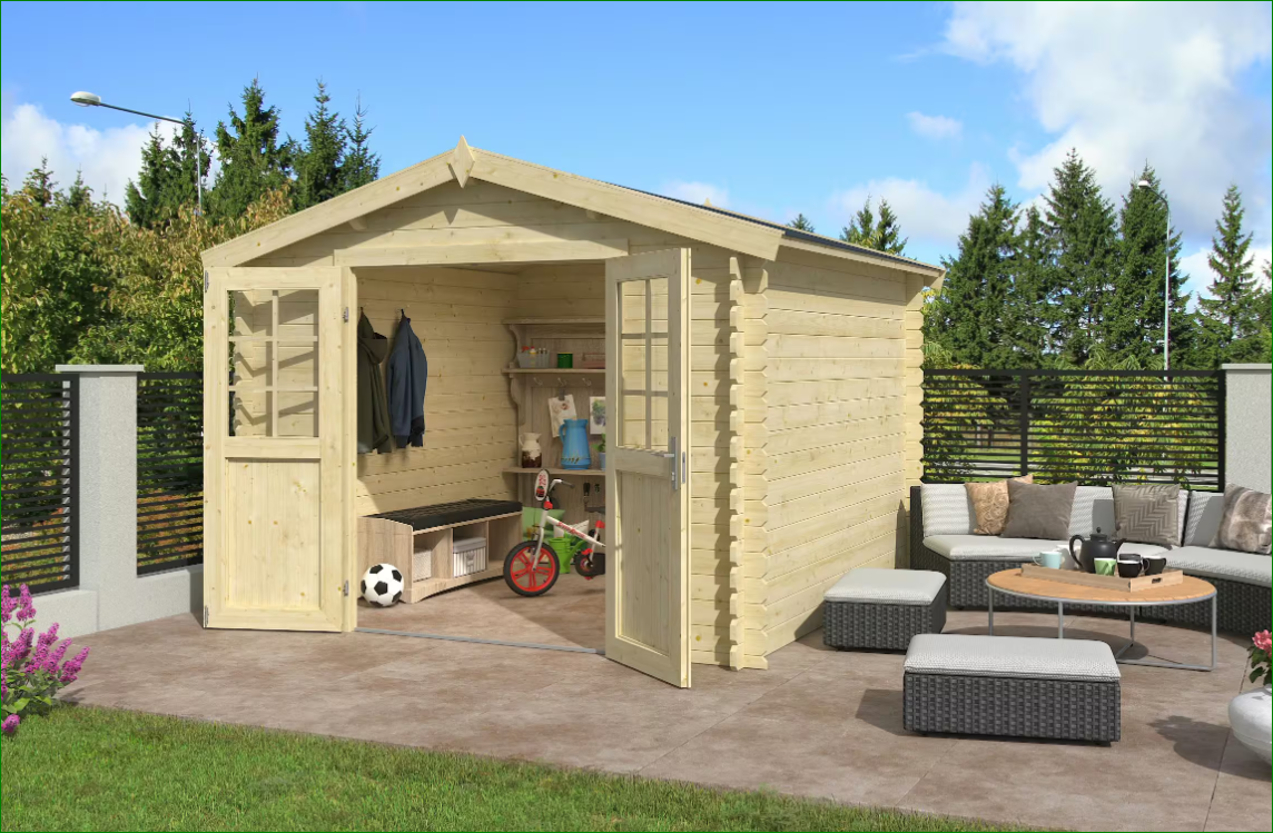 Il perfetto equilibrio tra stoccaggio sicuro e design funzionale. Questa struttura di Market Prime rappresenta la soluzione ideale per chi cerca un ricovero attrezzi robusto e spazioso senza rinunciare all'estetica naturale del legno. Realizzata con massicce assi in abete nordico naturale dallo spessore di 28 mm, garantisce una stabilità eccellente grazie al sistema di costruzione a perline ad incastro, che assicura una protezione affidabile contro gli agenti atmosferici e una lunga durata nel tempo.