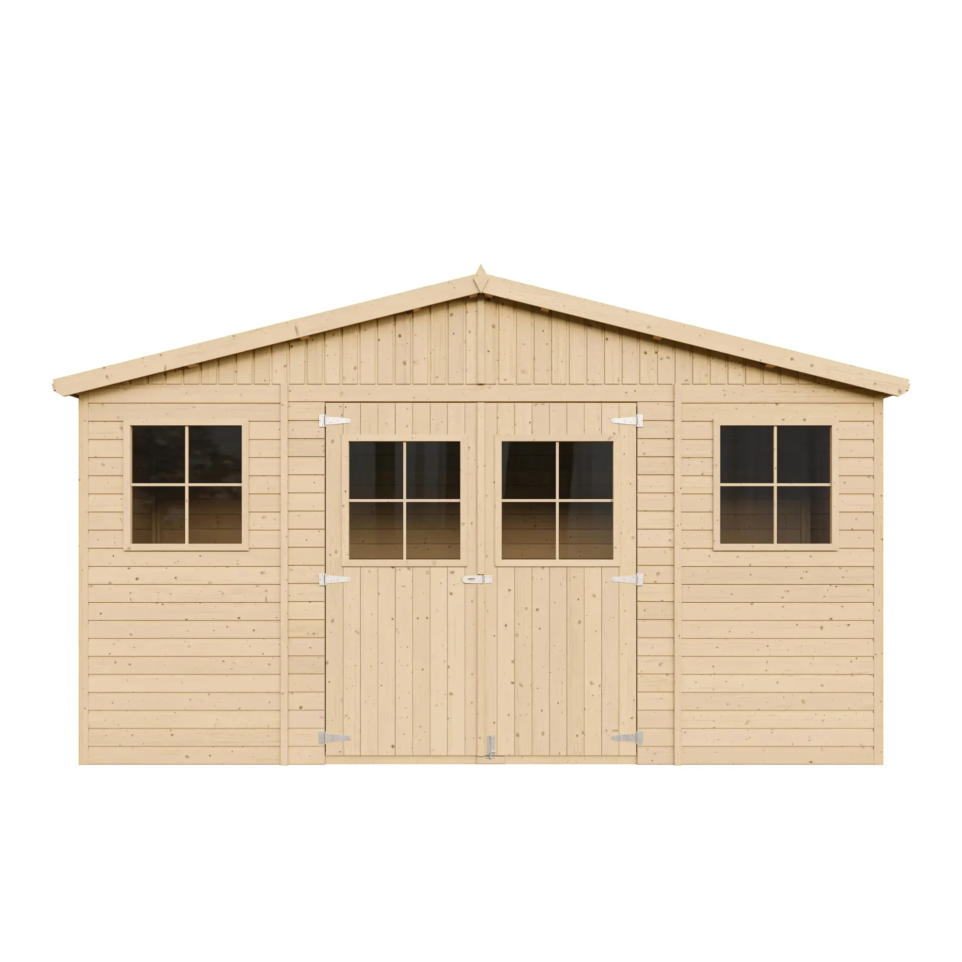 Struttura robusta: la casetta si monta rapidamente grazie ai pannelli prefabbricati in tavole di legno da 17 mm di spessore. La struttura si adatta facilmente sia accanto a una recinzione che in uno spazio aperto del giardino.