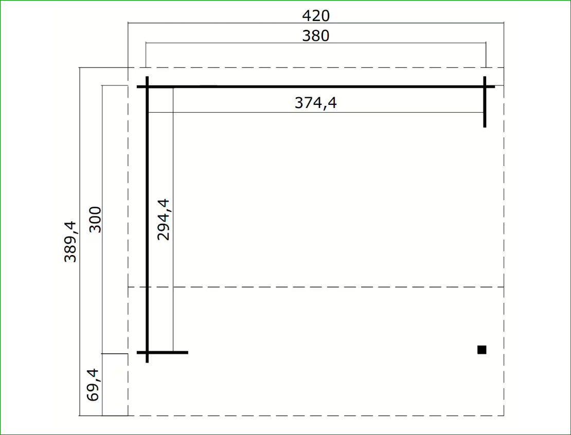 Dimensioni Parete Esterna: 380 x 300 centimetri