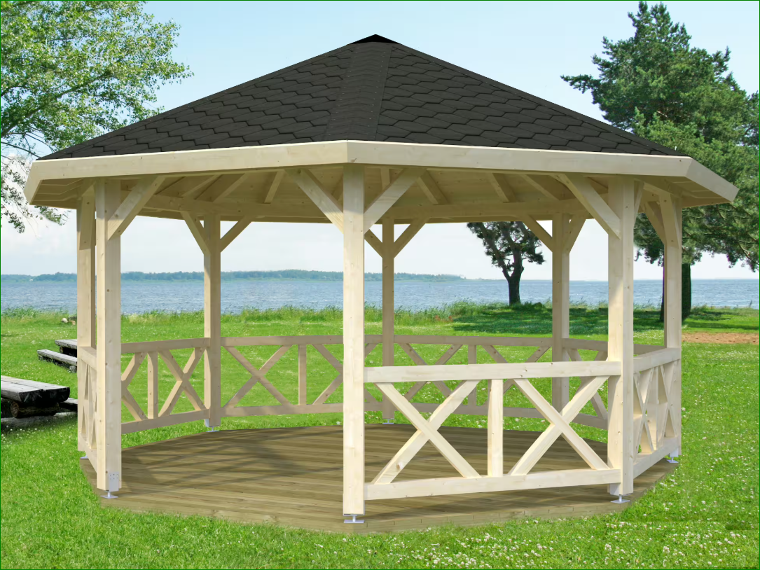 Il gazebo è la massima espressione di eleganza e ampiezza della gamma. Con un diametro imponente di 465 cm e una superficie di ben 18 metri quadrati, questo gazebo ottagonale trasforma il giardino in una vera e propria sala ricevimenti all'aperto. Progettato con materiali di ingegneria superiore, è la scelta definitiva per chi non accetta compromessi tra spazio, stile e solidità.