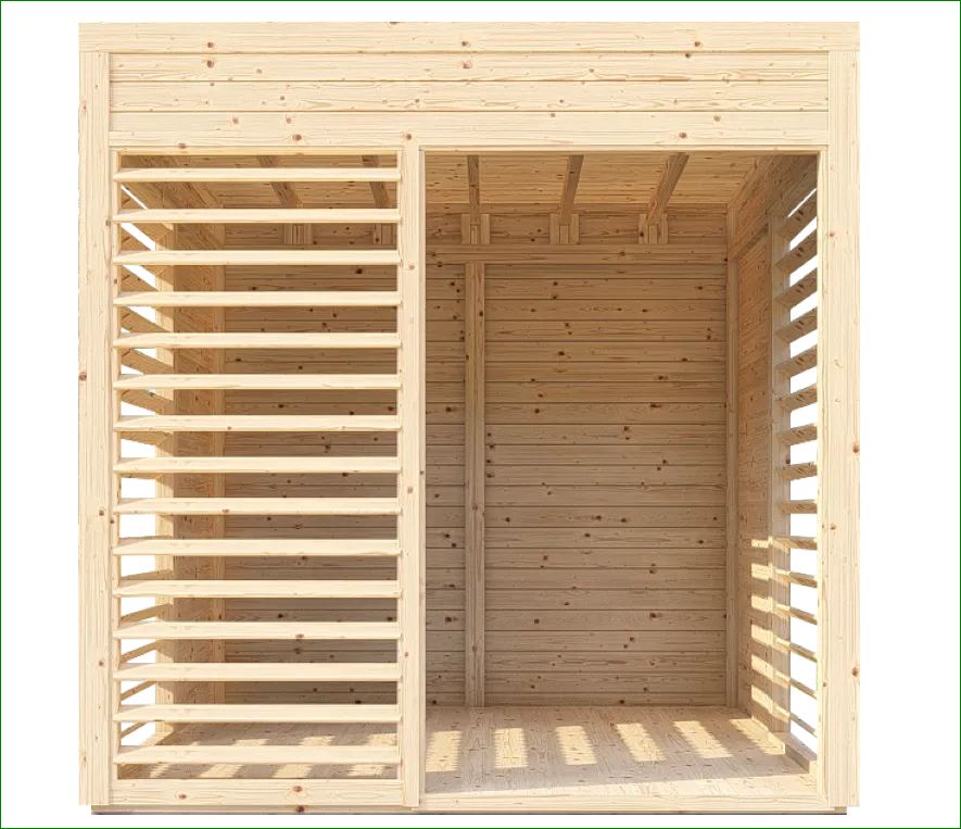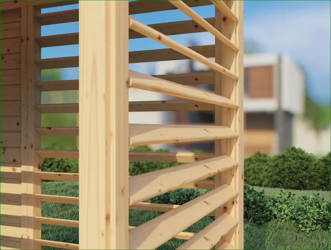 Qualità senza compromessi: sia il pavimento che il tetto sono realizzati con elementi in legno massello da 19 mm. Questa continuità di spessore assicura una sensazione di solidità sotto i piedi e una protezione robusta superiore rispetto ai comuni padiglioni in kit.