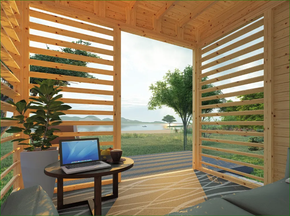 Questo padiglione è perfetto come zona meditazione, sala yoga all'aperto o semplicemente come zona conversazione protetta. Essendo consegnato in legno naturale, consigliamo un trattamento con impregnante trasparente per mantenere la tonalità chiara dell'abete nordico, oppure una vernice grigio antracite per un look ultra-moderno in stile scandinavo.