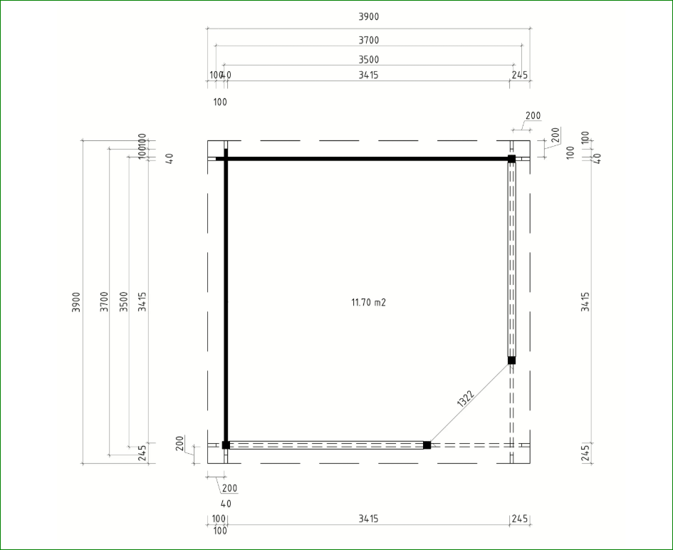 Dimensioni Esterne (Baita): 370 x 370 centimetri