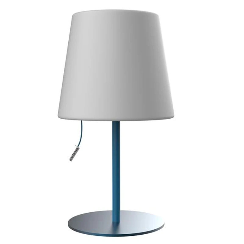 LAMPADA TAVOLO BLU MUITOMAS CON BASE IN METALLO DOTATA DI UN CORDINO PER ACCENSIONE, SPEGNIMENTO E REGOLAZIONE DEL TONO DELLA LUCE. CON PORTA DI RICARICA USB-C, COMBINA FUNZIONALITÀ E DESIGN MODERNO, E ILLUMINA I TUOI SPAZI CON STILE E SEMPLICITÀ.