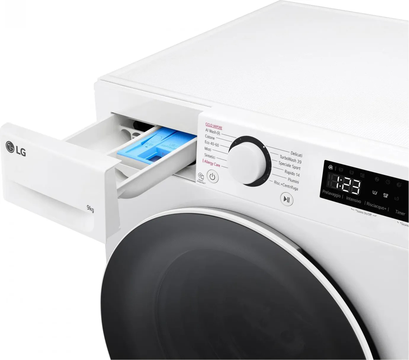 Programmi Vari: Eco 40-60, Cotone, Allergy Care, Delicati e Lavaggio Rapido.