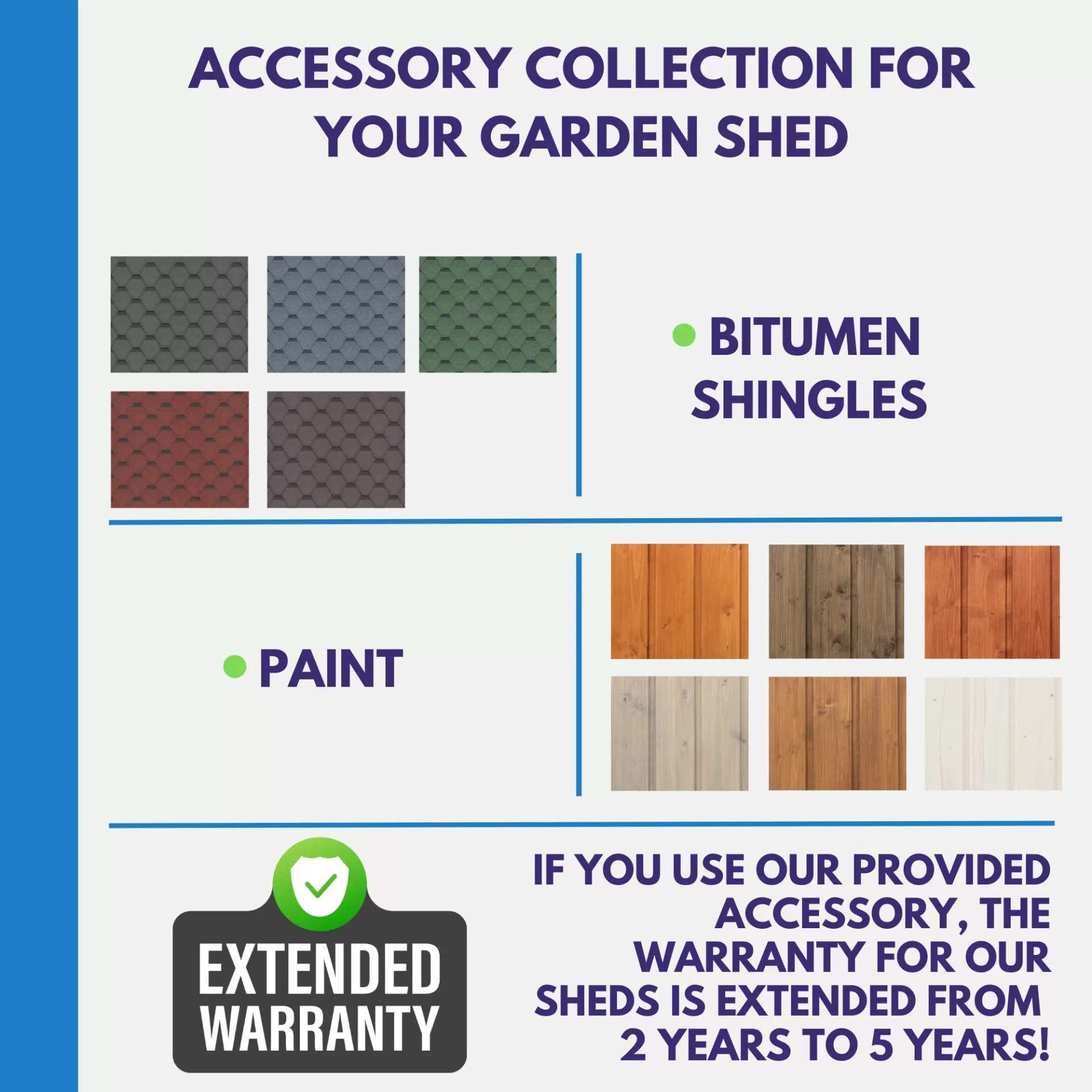 ACCESSORI AGGIUNTIVI: per una protezione aggiuntiva dagli agenti atmosferici, consigliamo di acquistare un set di tegole bituminose.