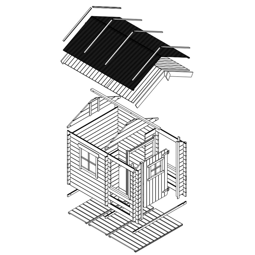 Sicura e certificata: tutte le casette sono realizzate in legno naturale, prive di sostanze nocive e certificate secondo la norma EN-71. Finestre e porte apribili con spazi di 15–20 mm tra i telai riducono il rischio di infortuni.
