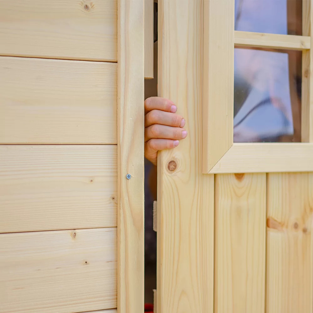 Sicura e certificata: tutte le casette sono realizzate in legno naturale, prive di sostanze nocive e certificate secondo la norma EN-71. Finestre e porte apribili con spazi di 15–20 mm tra i telai riducono il rischio di infortuni.