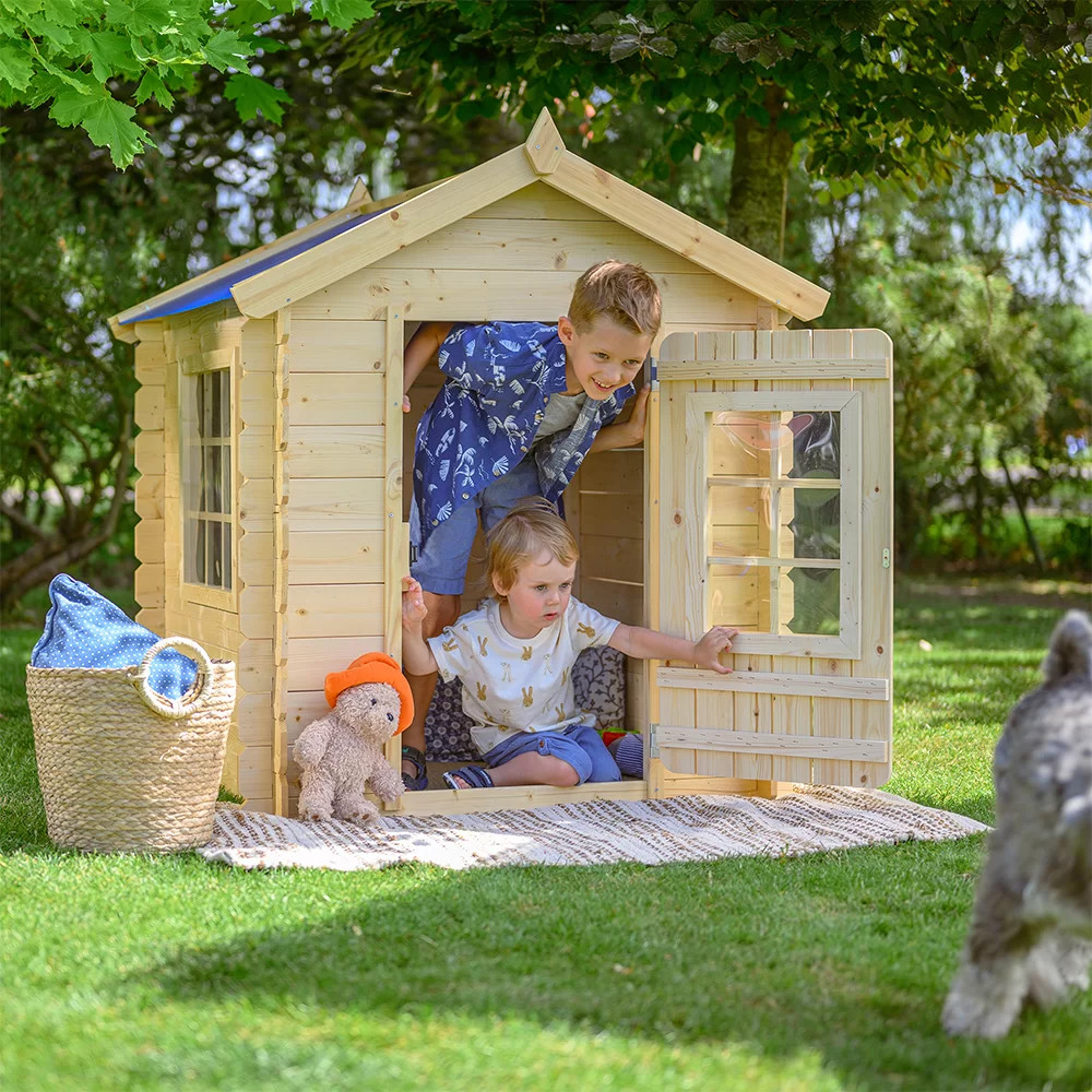 Casetta in legno per bambini – uno spazio per fantasia, creatività e movimento nel tuo giardino. Un angolo personale all'aperto stimola il gioco creativo, l'immaginazione e le competenze sociali, incoraggiando i bambini a trascorrere più tempo all'aria aperta. L'interno luminoso aggiunge fascino alla casetta e offre ai piccoli la sensazione di avere una vera casa tutta per sé.