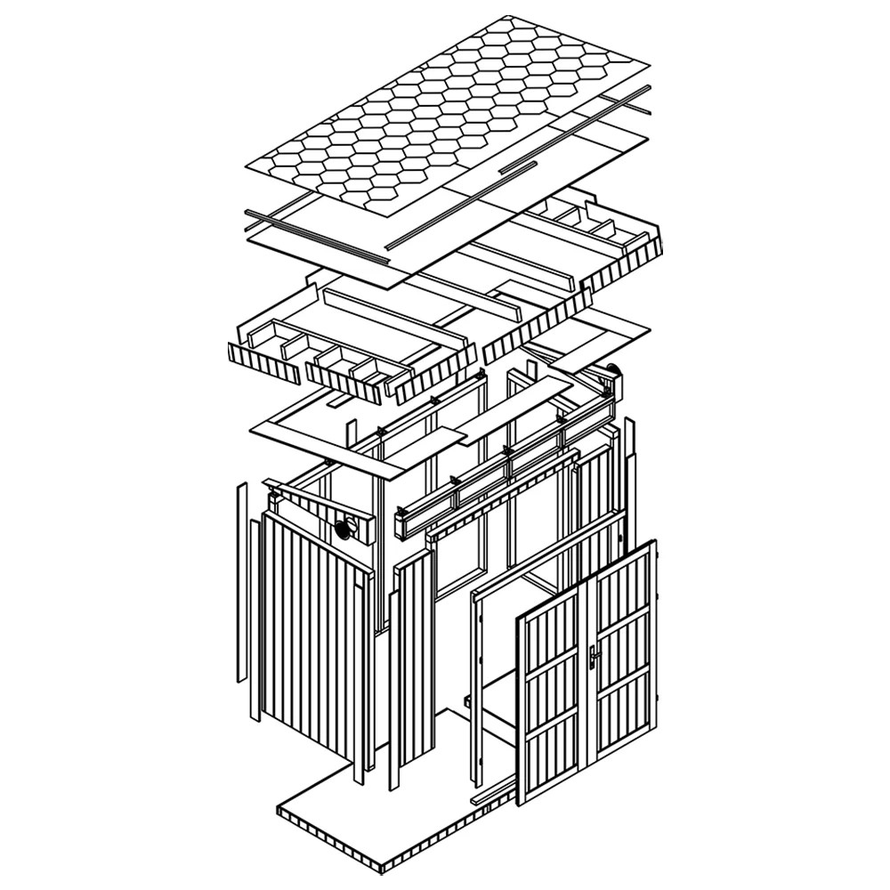 Struttura solida a pannelli: Le pareti sono costruite con un telaio in legno da 60×60 mm e pannelli LP® SmartSide® da 10 mm con superficie primerizzata – per garantire stabilità e durata nel tempo anche con condizioni climatiche avverse.