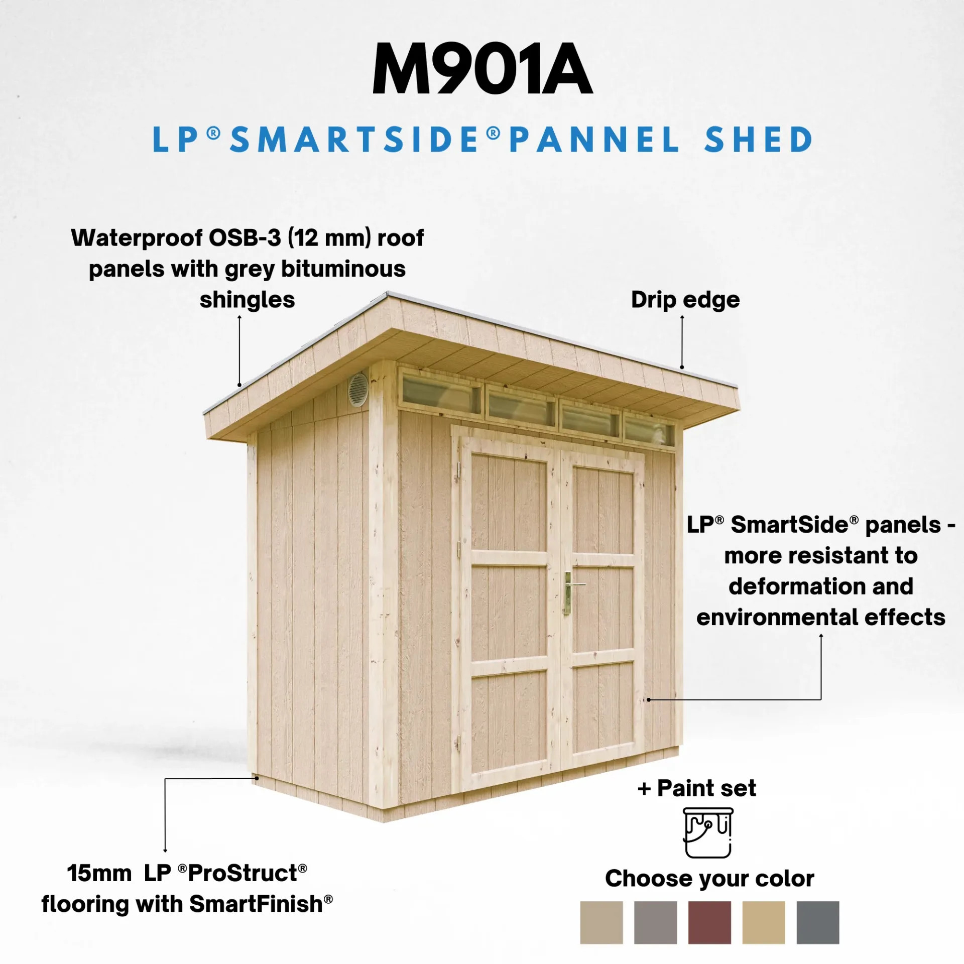 Casetta da giardino moderna e minimalista LP® SmartSide® – ideale per riporre in modo ordinato e pratico attrezzi da giardino, biciclette, piccoli utensili o giochi per bambini.