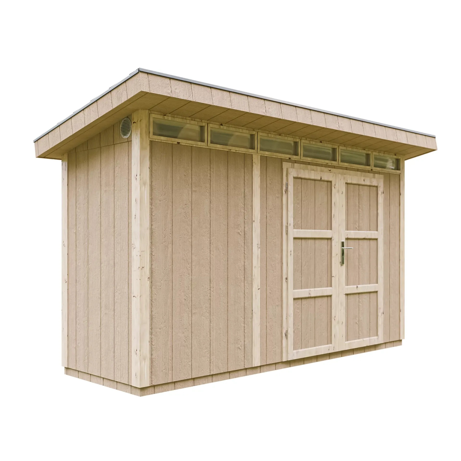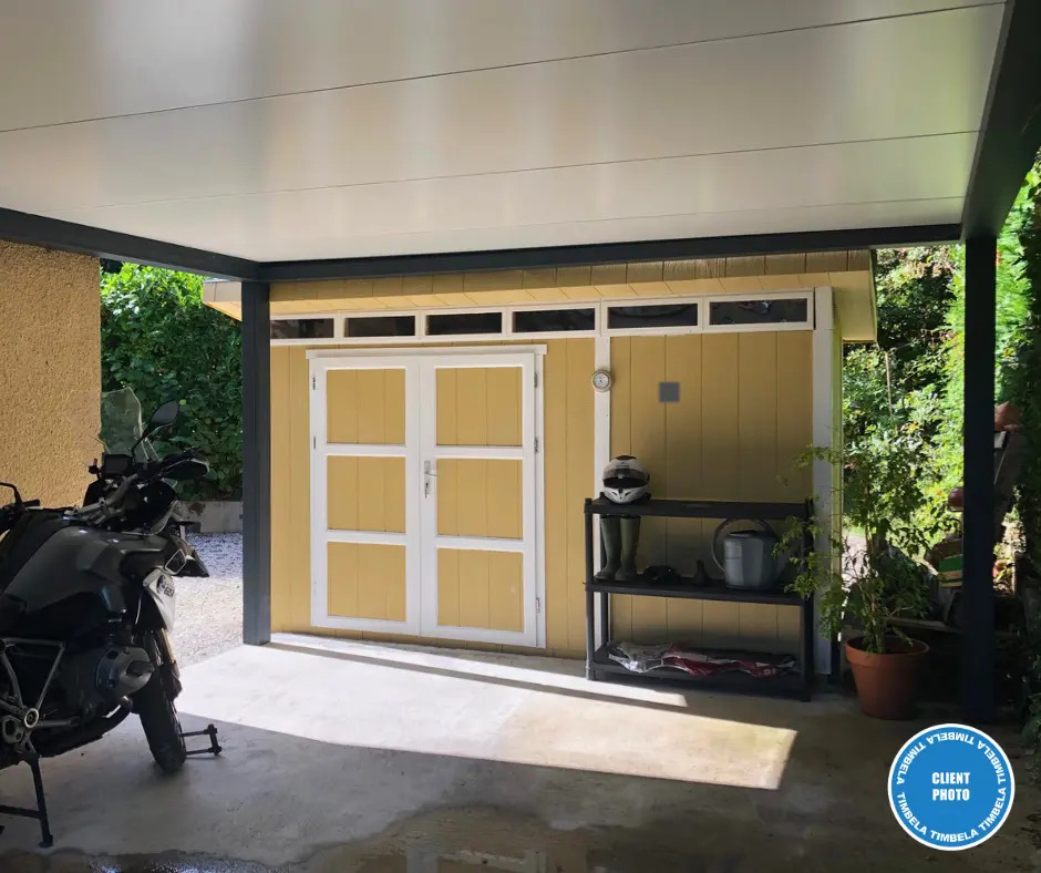 Struttura solida a pannelli: Le pareti sono costruite con un telaio in legno da 60×60 mm e pannelli LP® SmartSide® da 10 mm con superficie primerizzata – per garantire stabilità e durata nel tempo anche con condizioni climatiche avverse.